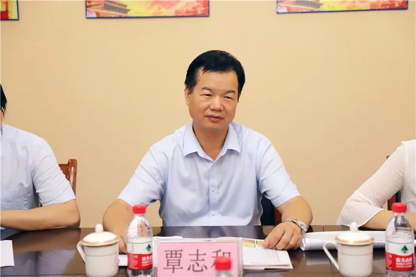 ▲廣西民族大學繼續(xù)教育學院院長覃志和座談交流