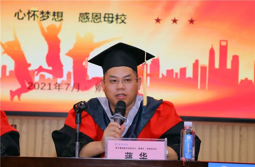 ▲集團(tuán)黨委書(shū)記蔣華代表育才全體老師對(duì)劉玉紅院長(zhǎng)一行百忙之中抽空參加畢業(yè)典禮表示熱烈的歡迎,對(duì)我函授站2021屆1396名畢業(yè)生順利畢業(yè)表示衷心的祝賀。他說(shuō),立足中國(guó)共產(chǎn)黨百年華誕的重大時(shí)刻和“兩個(gè)一百年”歷史交匯的關(guān)鍵節(jié)點(diǎn),今天的畢業(yè)典禮意義非凡厚重,他希望同學(xué)們能學(xué)以致用,畢業(yè)后保持聯(lián)系,勉勵(lì)專(zhuān)科畢業(yè)的同學(xué)繼續(xù)報(bào)讀本科,本科畢業(yè)的繼續(xù)報(bào)讀研究生,活到老,學(xué)到老。