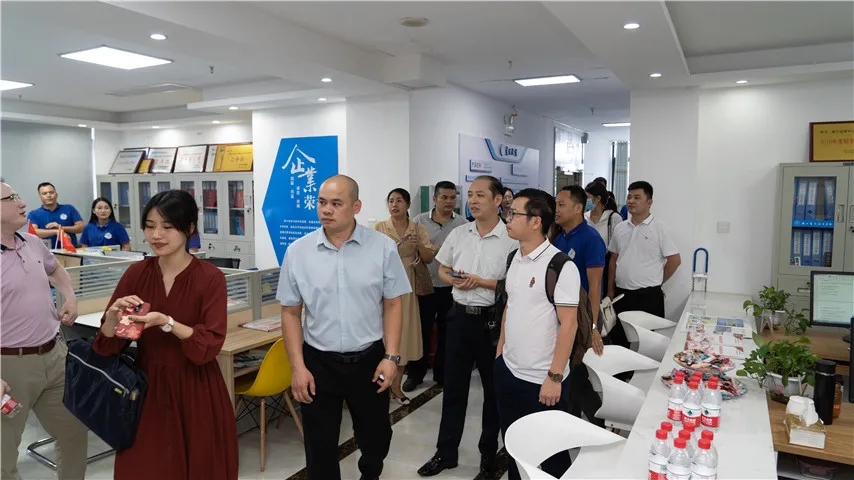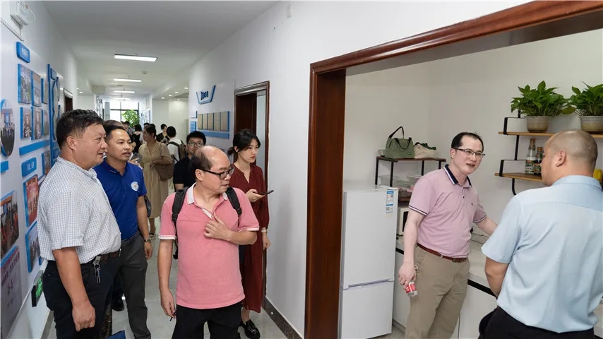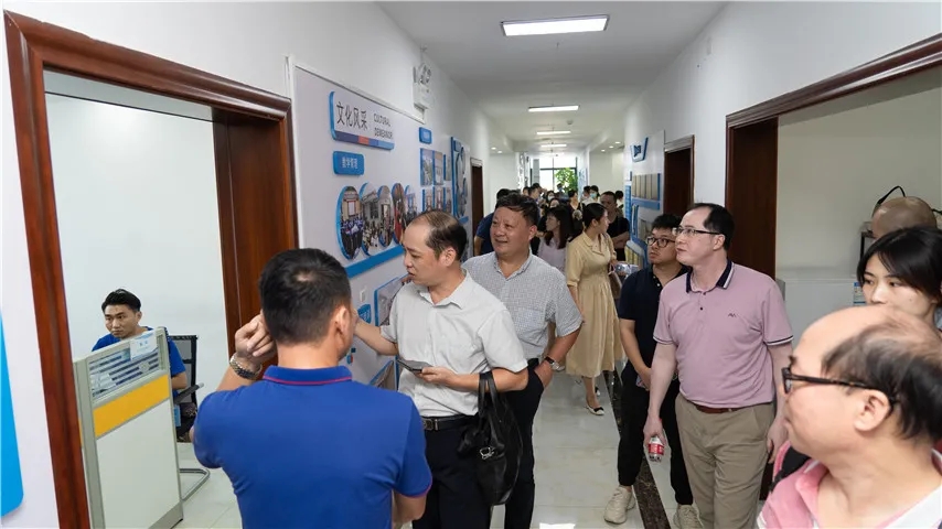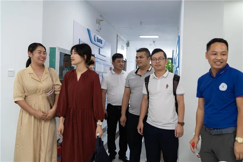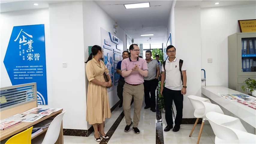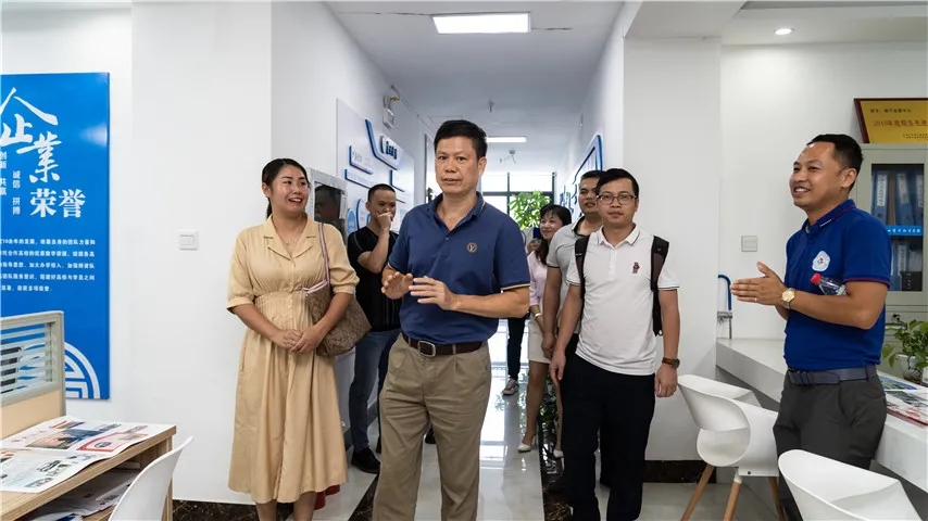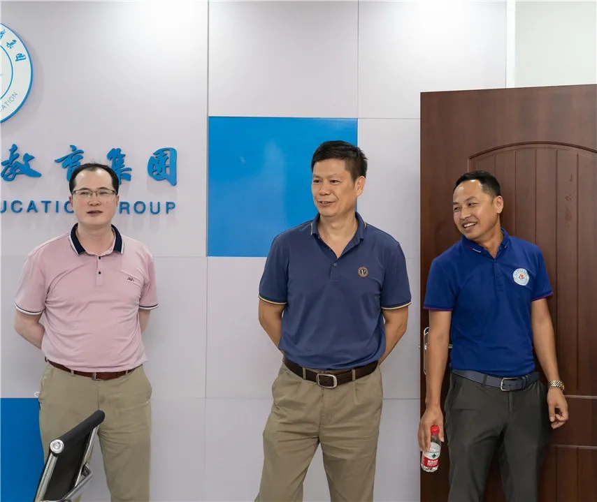 ▲廣西警察學院繼教院院長王勇?。ㄖ校?、副院長賴崇偉(左)蒞臨集團南寧總部指導