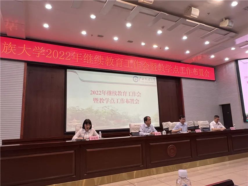 5月31日,廣西民族大學2022年繼續(xù)教育工作會暨教學點工作布置會在學??萍紭菆蟾鎻d順利召開,廣西民族大學黨委常委、總會計師蔡高根,繼續(xù)教育學院院長覃志和,副院長唐曉華、閻金寧以及各科室老師、函授站(點)負責人共80余人參加了會議。我函授站站長蔣華、副站長王志參加了會議。