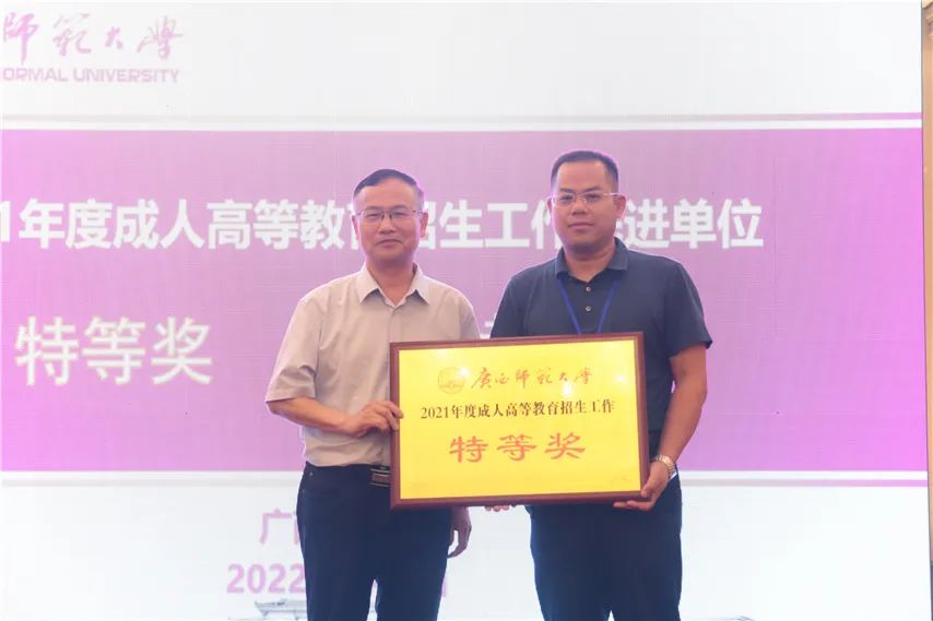 會(huì)議表彰了2021年度成人高等教育招生工作先進(jìn)單位,因工作出色,我教學(xué)點(diǎn)榮獲廣西師范大學(xué)2021年度成人高等教育招生工作“特等獎(jiǎng)”,這是集團(tuán)與廣西師范大學(xué)合作辦學(xué)以來(lái),第12次榮獲廣西師范大學(xué)成人高等教育招生工作“特等獎(jiǎng)”。2020年還榮獲廣西師范大學(xué)中國(guó)高校繼續(xù)教育優(yōu)秀函授站。