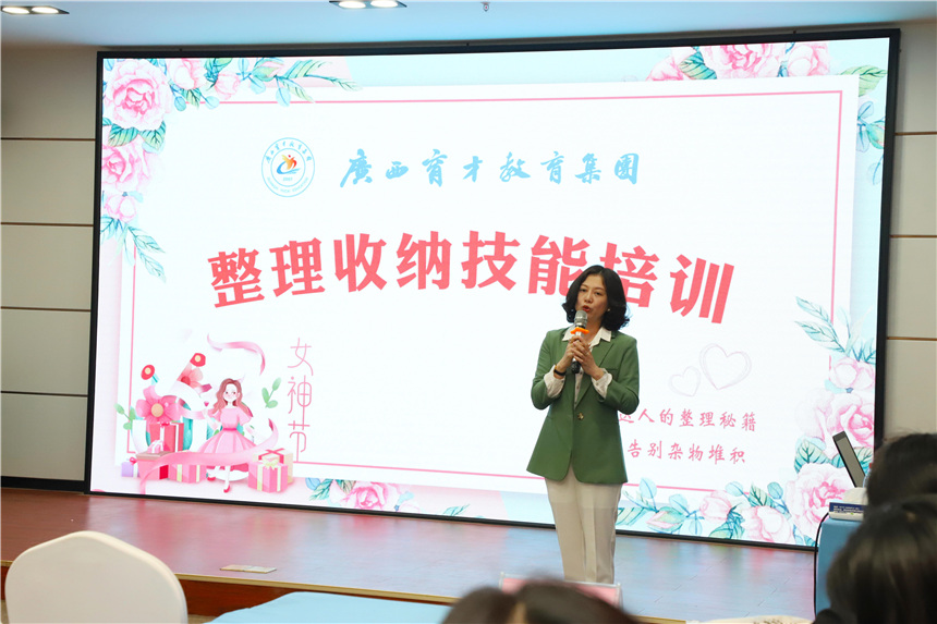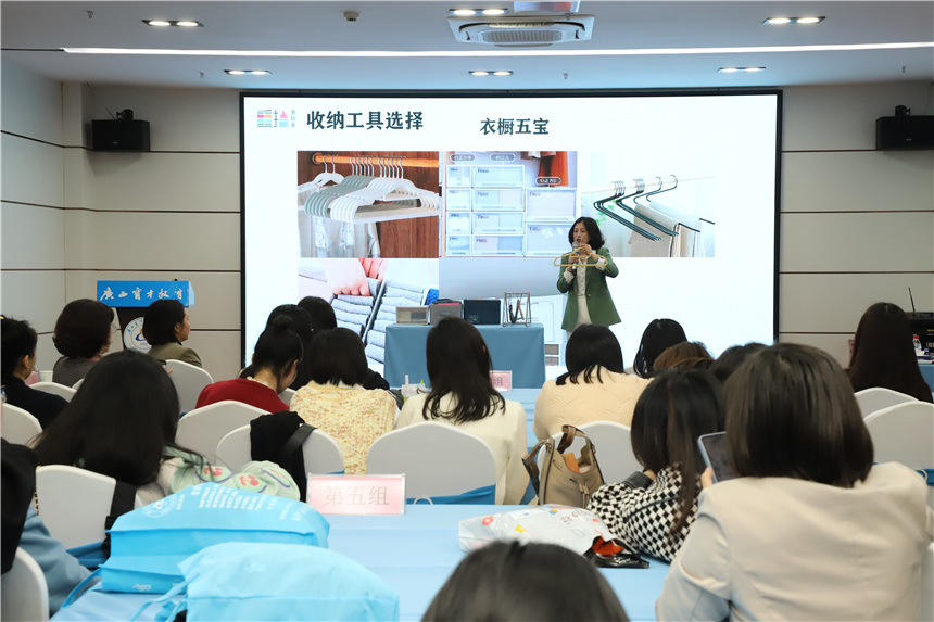 收納不僅是一種生活態(tài)度,更是一種生活智慧。為進一步豐富集團職工文化生活,營造舒適的環(huán)境,提升家庭的幸福指數(shù),3月8日下午,集團在屏山校區(qū)開展收納整理技能培訓(xùn),邀請整理收納師劉玲君為大家授課,集團柳州本部的60余名女職工參加了培訓(xùn)。