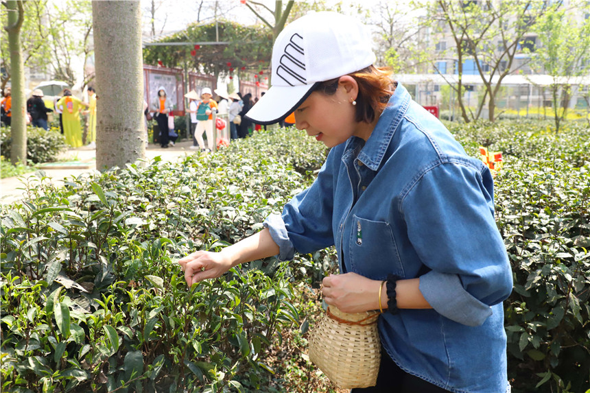 美麗姑娘茶園走,茶歌飛上白云頭?!安刹枰话阒徊梢谎恳蝗~或一芽二葉,采摘動作要輕,手指要向上提……”在工作人員的指導(dǎo)下,大家走進茶園,根據(jù)任務(wù)單完成采茶分工任務(wù),留下采茶足跡,體驗采茶樂趣。