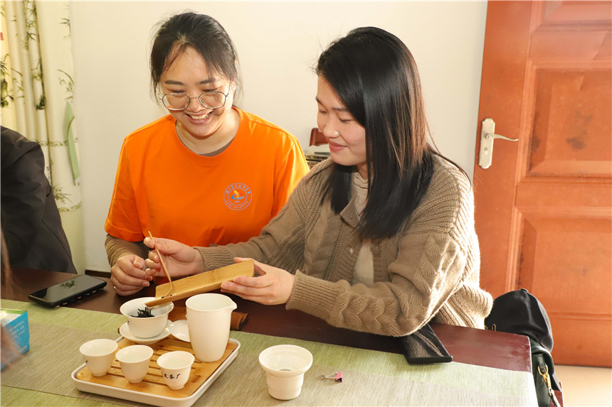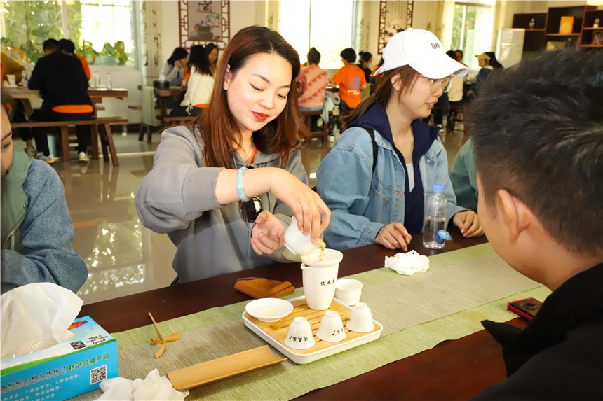 品味茶藝,品味人生。在茶藝展示中心,茶藝?yán)蠋熯M行了茶藝表演,從洗茶、沖泡,到封壺、分杯、奉茶,每一個環(huán)節(jié)都蘊含著中國茶文化的獨特魅力。大家也在老師的帶領(lǐng)下親自動手體驗茶葉沖泡技巧,品鑒茶香。