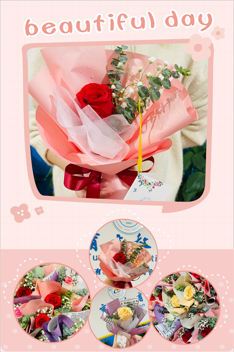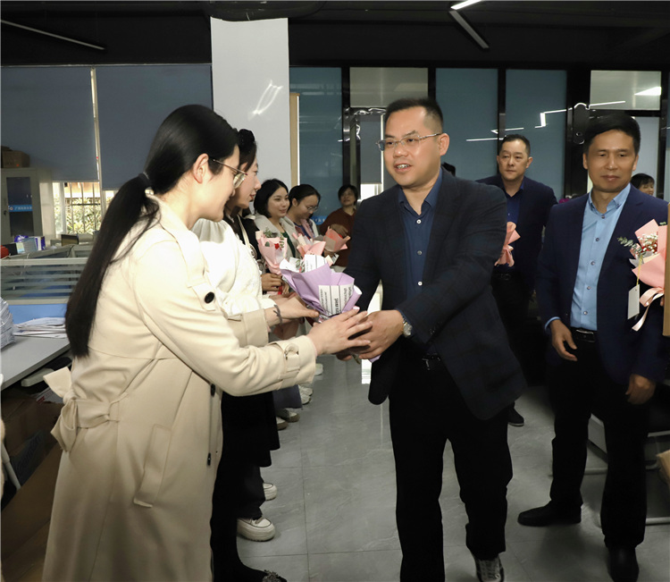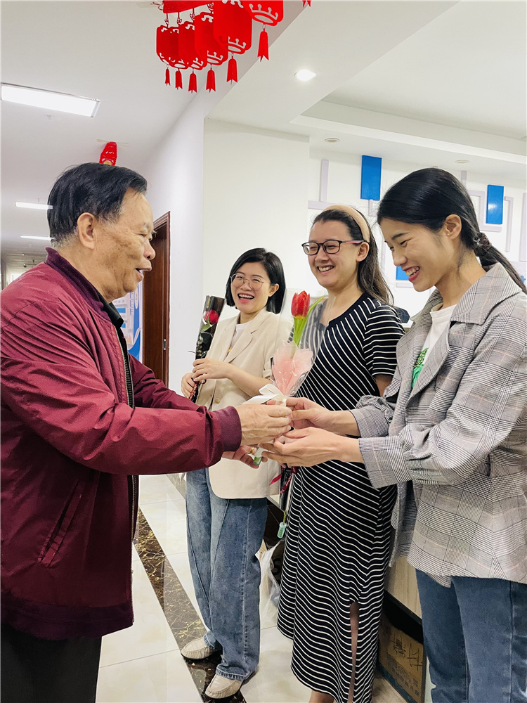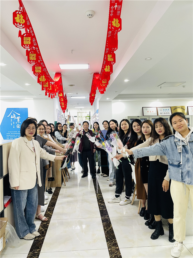 一束鮮花,一句祝福,一份美好。3月8日上午,集團黨委書記、董事長蔣華,市委組織部派駐集團第一書記冼慶榮、集團培訓(xùn)總監(jiān)高月亮老師等領(lǐng)導(dǎo)為在崗的女職工現(xiàn)場發(fā)放節(jié)日福利,向辛勤工作在集團各個崗位的女職工送上了鮮花和節(jié)日祝福。