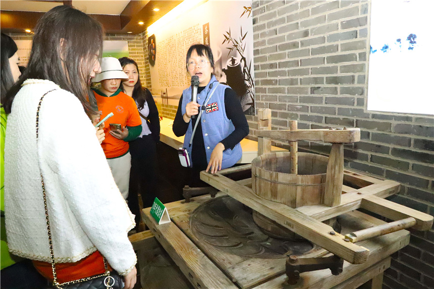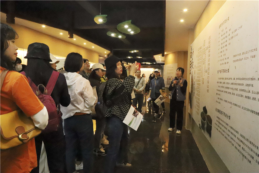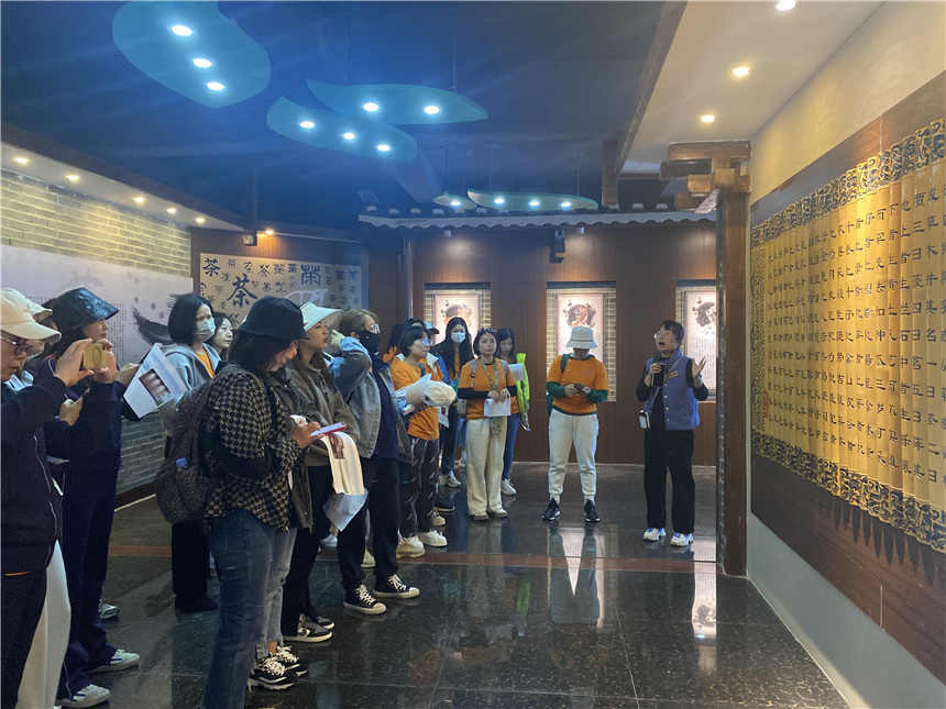 在伏虎農(nóng)場茶文化博物館和僑文化博物館,講解員熱情地給大家講解茶文化,從茶葉的歷史、生長環(huán)境到茶葉傳統(tǒng)的制作工藝,使大家了解茶文化的起源和發(fā)展歷程、宏偉神秘的中華茶史以及農(nóng)場華僑文化,其間各小組需完成打卡學(xué)習(xí)任務(wù)。
