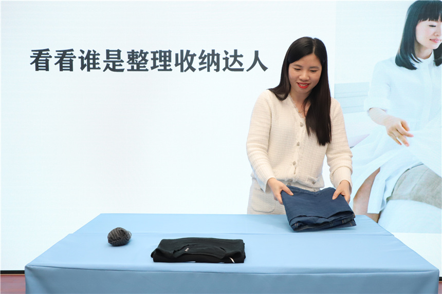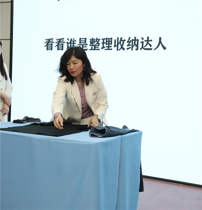 本次培訓(xùn)以“講座+實操”的形式,劉老師從“斷舍離”理念引入,為大家普及了整理收納的含義和基本原則,講解了居家整理的六個步驟:規(guī)劃、清空、分類、篩選、收納、維持。指導(dǎo)大家使用科學(xué)收納方法更合理、更高效、更舒適地規(guī)劃生活。劉老師還現(xiàn)場演示了T恤、褲子、襪子、內(nèi)衣褲的立式折疊方法,讓學(xué)員們受益頗多。互動實操環(huán)節(jié),大家紛紛麻利地動起手來,學(xué)以致用。看到疊得整整齊齊的衣襪,大家成就感十足,紛紛表示:“參加這次活動太有收獲了,學(xué)到了非常實用的收納整理技巧,回去之后就把家整理起來?!?/span>