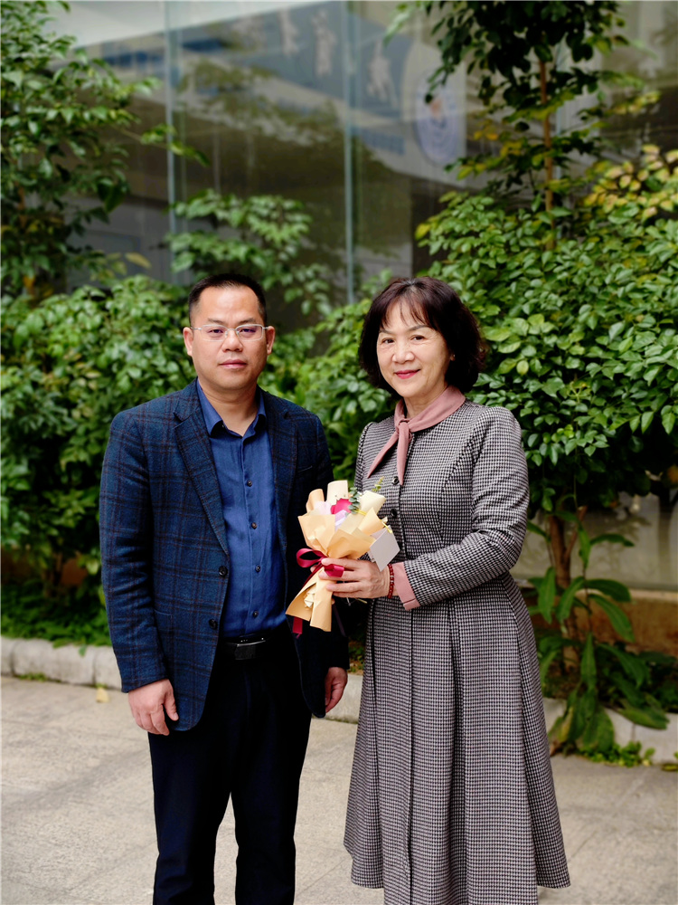▲集團黨委書記、董事長蔣華為集團專家工作室李紅文老師送鮮花