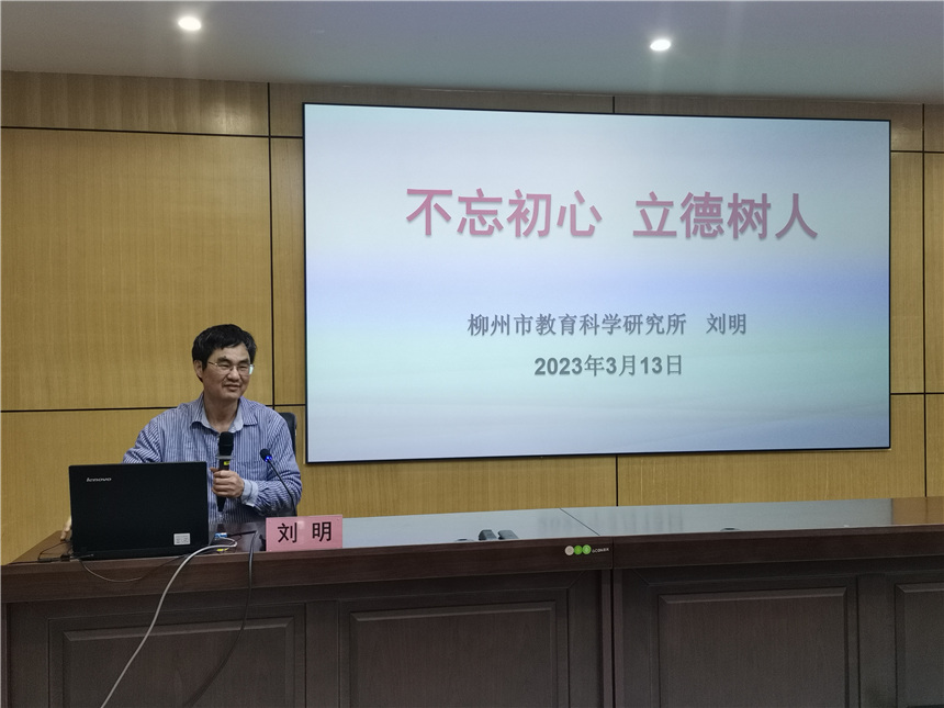 ▲柳州市教育科學(xué)研究所原所長(zhǎng)兼書(shū)記劉明為學(xué)員授課