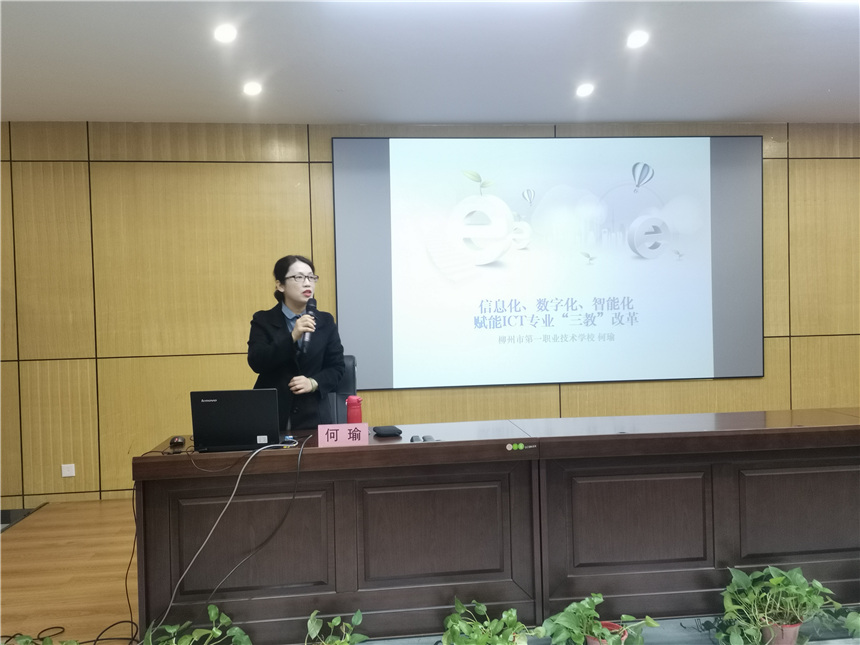 ▲柳州市教育局職業(yè)教育與成人教育科副科長(zhǎng)佘瑩作動(dòng)員講話