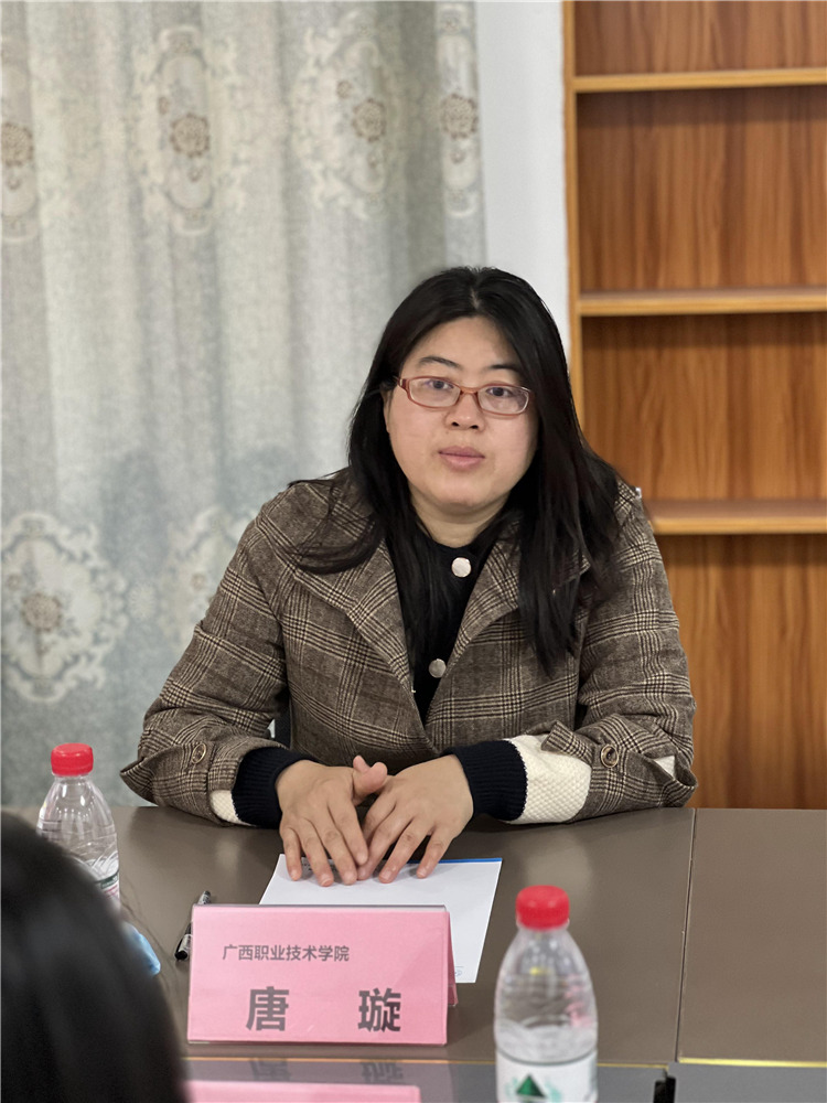 ▲座談會(huì)現(xiàn)場 ▲廣西職業(yè)技術(shù)學(xué)院繼續(xù)教育學(xué)院學(xué)歷科科長唐旋座談交流