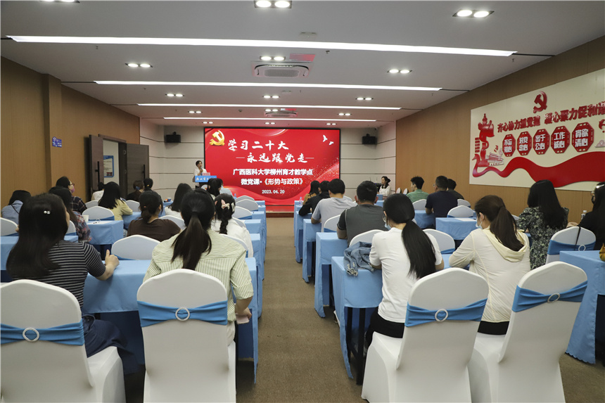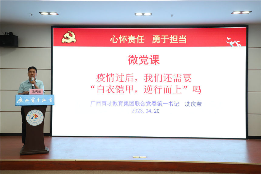 學(xué)習(xí)二十大,永遠(yuǎn)跟黨走。開(kāi)學(xué)典禮前,柳州市委組織部派駐集團(tuán)黨委第一書(shū)記冼慶榮(原柳州市委黨校副校長(zhǎng))給學(xué)生黨員上了一堂《形勢(shì)與政策》思政課。冼書(shū)記的授課內(nèi)容豐富、圖文并茂,結(jié)合醫(yī)學(xué)類(lèi)學(xué)生的工作特點(diǎn)及生活中的案例,給學(xué)生講授了一場(chǎng)精彩別開(kāi)生面的思政課,課上學(xué)生也踴躍的發(fā)表了個(gè)人的看法和感想。