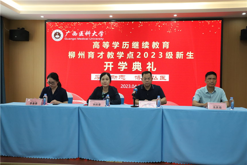 4月20日上午,廣西醫(yī)科大學(xué)高等學(xué)歷繼續(xù)教育柳州育才教學(xué)點(diǎn)2023級(jí)新生開(kāi)學(xué)典禮在集團(tuán)屏山校區(qū)隆重舉行,廣西醫(yī)科大學(xué)繼續(xù)教育學(xué)院副院長(zhǎng)劉慶委、李春燕,集團(tuán)黨委書(shū)記、董事長(zhǎng)、教學(xué)點(diǎn)負(fù)責(zé)人蔣華,柳州市委組織部派駐集團(tuán)黨委第一書(shū)記冼慶榮以及來(lái)自柳州醫(yī)藥衛(wèi)生系統(tǒng)的80余名新生代表參加了開(kāi)學(xué)典禮。