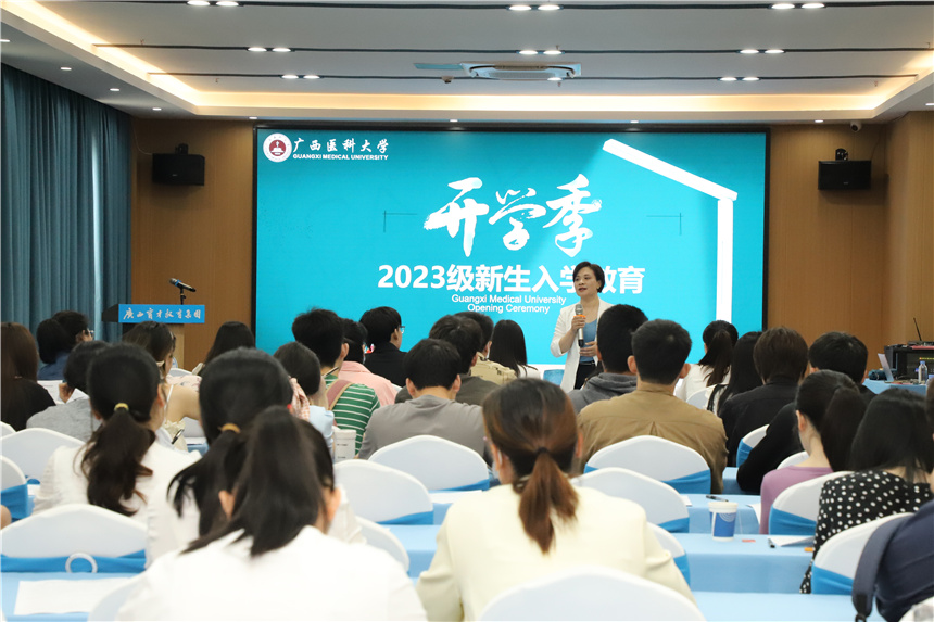 ▲開(kāi)學(xué)典禮在廣西醫(yī)科大學(xué)校歌中落下帷幕