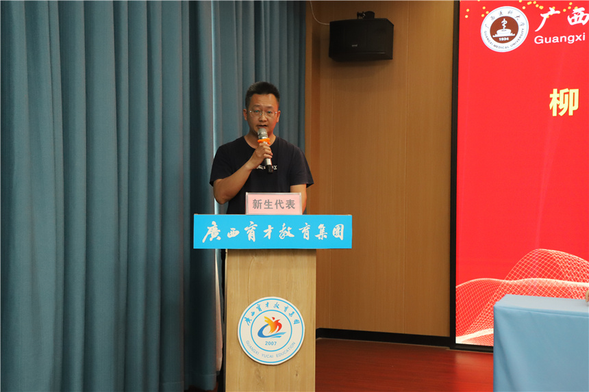 劉慶委副院長(zhǎng)代表學(xué)校講話,她向同學(xué)們表示熱烈的歡迎和衷心的祝賀,向柳州育才教學(xué)點(diǎn)各位領(lǐng)導(dǎo)和教職工致以誠(chéng)摯的感謝!劉慶委副院長(zhǎng)向同學(xué)們介紹了光榮校史,共同感受學(xué)校櫛風(fēng)沐雨、如詩(shī)如歌的奮斗故事,希望同學(xué)們以前輩為榜樣,開(kāi)啟不一樣的“醫(yī)路人生”,做胸懷壯志、兼容并蓄、責(zé)任擔(dān)當(dāng)、勇于奮進(jìn)的“廣西醫(yī)大人”。她向同學(xué)們提出了三點(diǎn)希望:一要“厚德勵(lì)志、博學(xué)弘醫(yī)”,熔鑄母校精神、涵養(yǎng)母校氣質(zhì)、浸潤(rùn)母校精魂;二要淬煉本領(lǐng),守護(hù)健康,在新時(shí)代踔厲奮發(fā),篤行不怠,勇?lián)姑脤?zhuān)業(yè)知識(shí)和能力,守護(hù)一方安康,續(xù)寫(xiě)時(shí)代華章;三要不忘初心,矢志奮斗,盡快轉(zhuǎn)換角色,調(diào)整“換檔”,占領(lǐng)學(xué)習(xí)C位,實(shí)現(xiàn)人生規(guī)劃“彎道超越”。