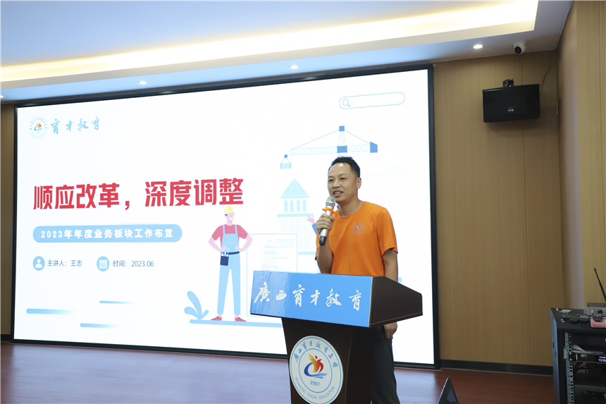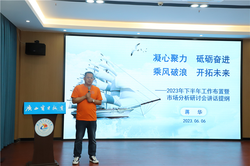 集團(tuán)黨委副書(shū)記、副校長(zhǎng)王志作2023年下半年業(yè)務(wù)板塊工作布置,他對(duì)2022年的業(yè)務(wù)工作進(jìn)行了回顧,并對(duì)2023年的市場(chǎng)現(xiàn)狀進(jìn)行了分析,動(dòng)員全體職工認(rèn)清形勢(shì)、求新求變、保持熱情、奮發(fā)前行,圓滿完成集團(tuán)下達(dá)給各運(yùn)營(yíng)部的目標(biāo)任務(wù),開(kāi)創(chuàng)營(yíng)銷(xiāo)發(fā)展新局面。