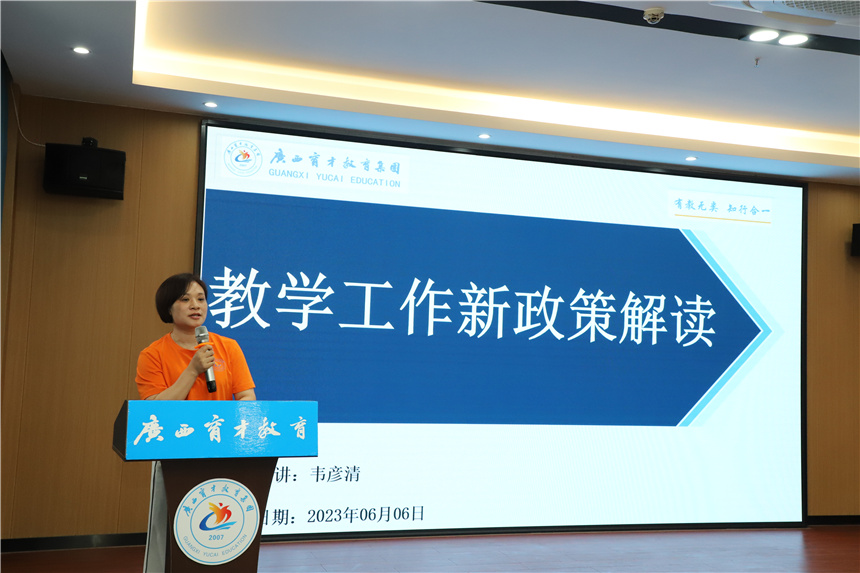 ▲教學(xué)教務(wù)部部長(zhǎng)韋彥清作教學(xué)工作新政策解讀