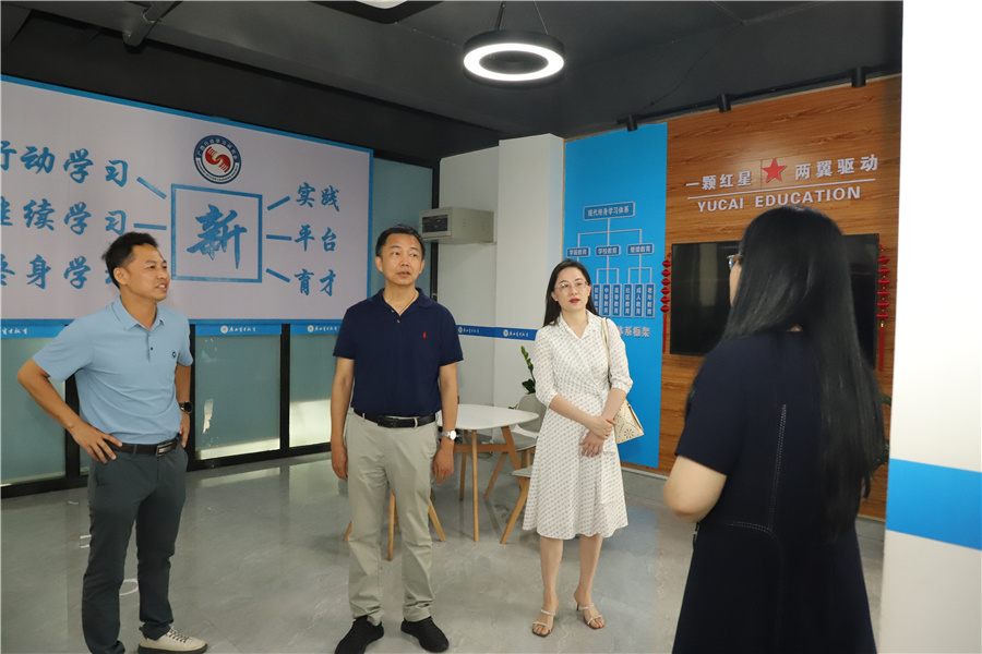 6月28日,南寧師范大學繼續(xù)教育學院院長徐健,副院長葉郁,成高中心主任伍應(yīng)樹一行3人蒞臨集團柳州本部檢查指導,集團黨委副書記、副校長王志,黨委委員、副校長李彩梅,蔣亮陪同并參加了座談會。