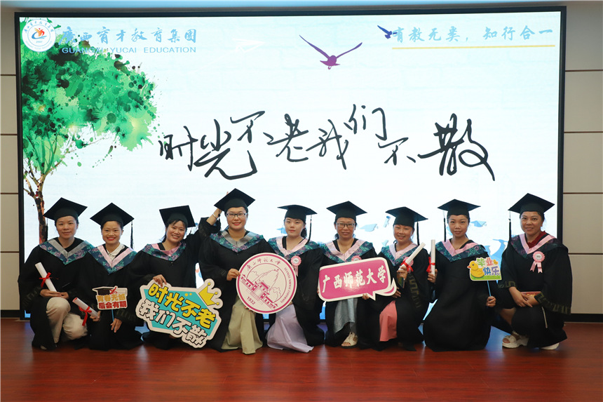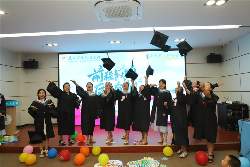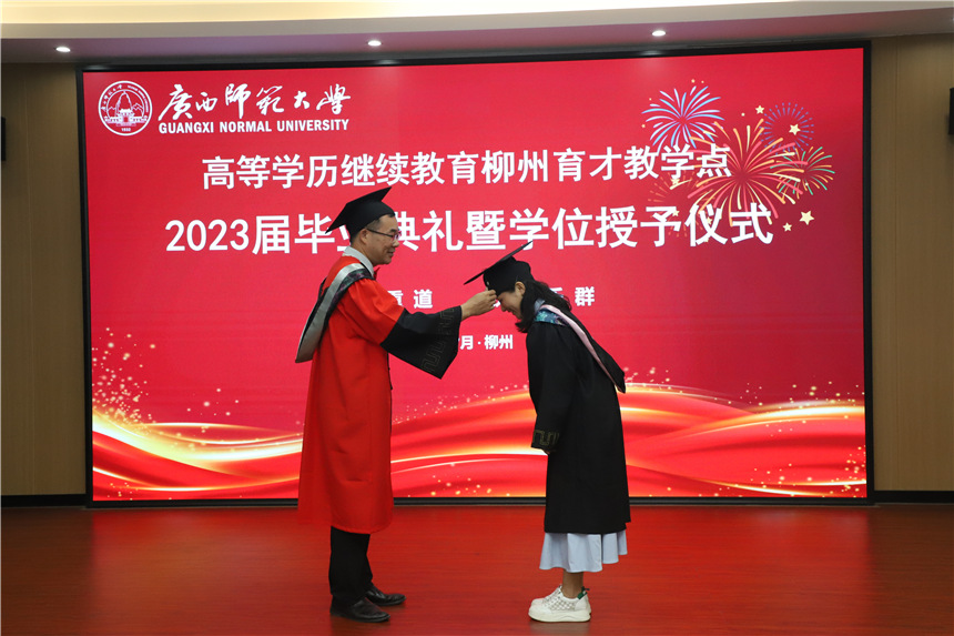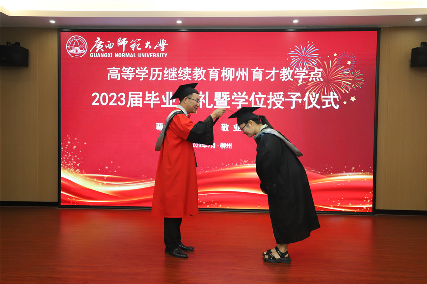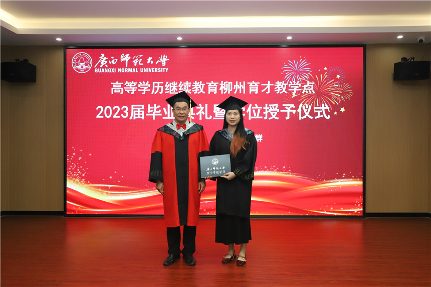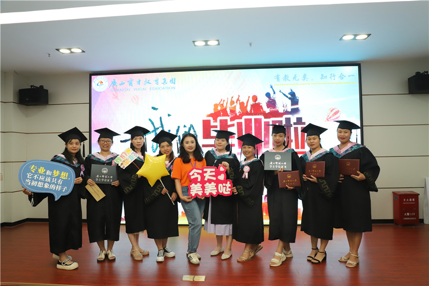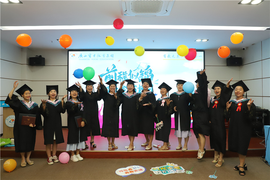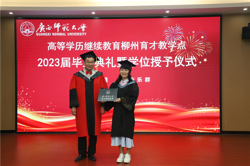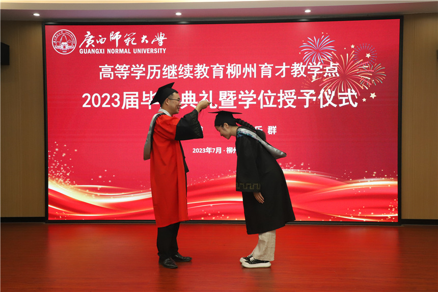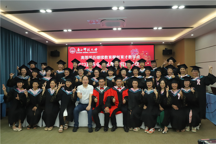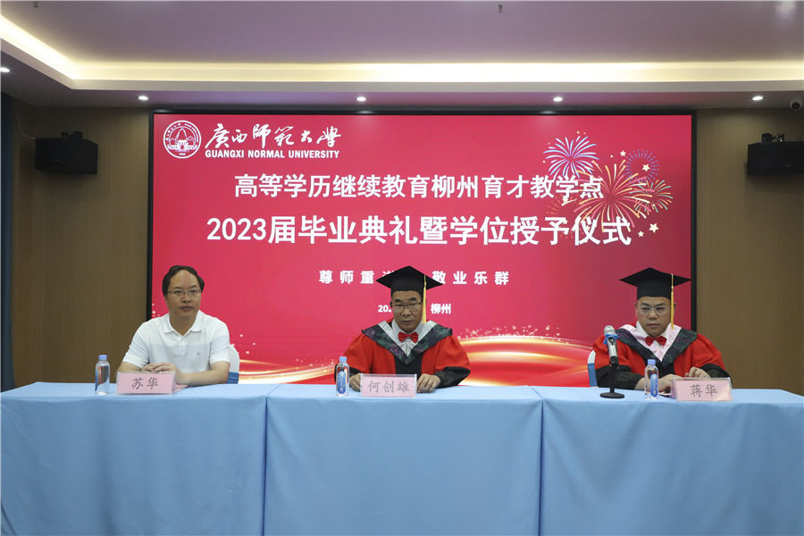 7月9日上午,廣西師范大學(xué)高等學(xué)歷繼續(xù)教育柳州育才教學(xué)點(diǎn)2023屆畢業(yè)典禮暨學(xué)位授予儀式在集團(tuán)屏山校區(qū)隆重舉行,廣西師范大學(xué)繼續(xù)教育學(xué)院副院長何創(chuàng)雄、院長助理蘇華,集團(tuán)黨委書記、董事長、教學(xué)點(diǎn)負(fù)責(zé)人蔣華、副校長李彩梅以及140余名畢業(yè)生代表參加了典禮。