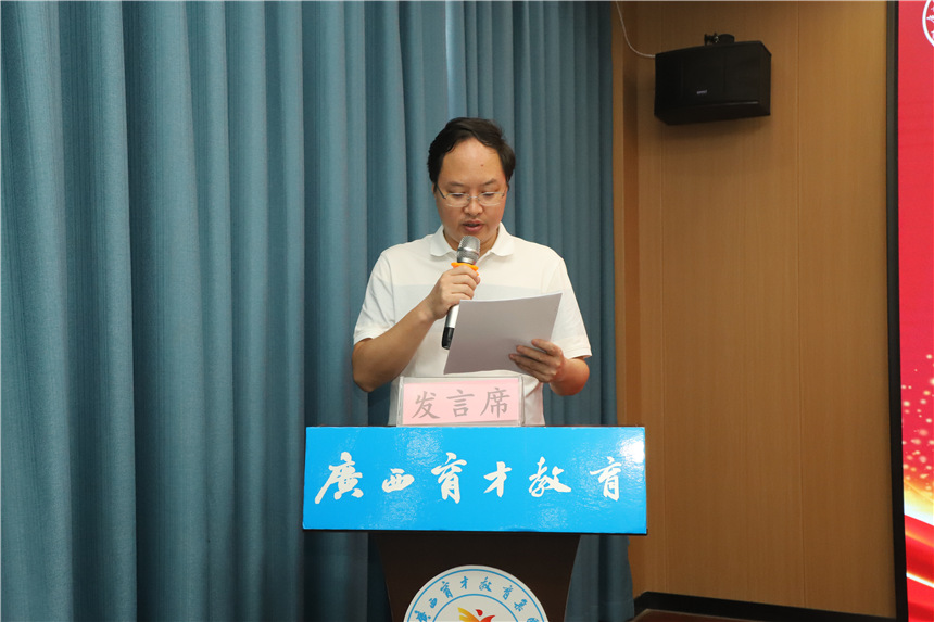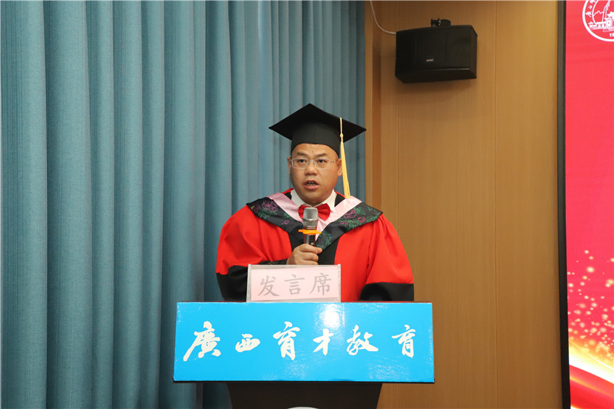 集團(tuán)黨委書記、董事長、教學(xué)點(diǎn)負(fù)責(zé)人蔣華代表育才全體老師對何創(chuàng)雄副院長一行百忙之中抽空參加畢業(yè)典禮表示熱烈的歡迎,對我教學(xué)點(diǎn)2023屆1725名畢業(yè)生順利畢業(yè)表示衷心的祝賀。他對當(dāng)前國際國內(nèi)形勢進(jìn)行了簡要分析,希望同學(xué)們自覺地把個(gè)人的理想和祖國的命運(yùn)緊緊聯(lián)系在一起,把個(gè)人的志向與民族的振興緊緊聯(lián)系在一起。感謝廣西師范大學(xué)送教上門,大家在家門口就能完成學(xué)業(yè);感謝教學(xué)點(diǎn)的管理老師和班主任辛勤勞動(dòng),感謝大家付出艱辛汗水出色地完成學(xué)業(yè),感謝在學(xué)習(xí)的前行路上陪伴自己的家人。