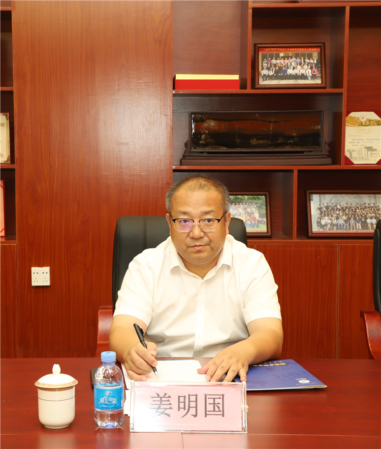▲廣西民族大學(xué)校黨委常委、副校長姜明國座談交流