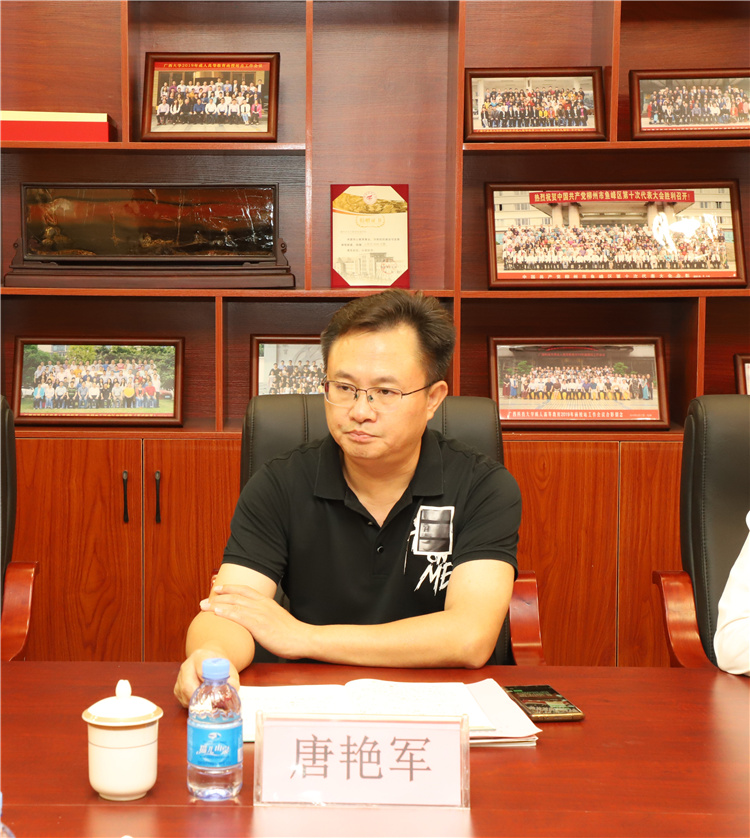 ▲廣西民族大學(xué)科技處處長唐國吉座談交流