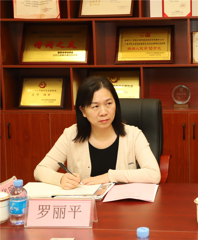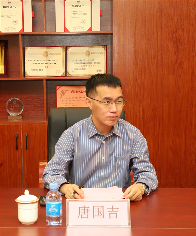 ▲廣西民族大學(xué)招生就業(yè)處處長唐艷軍座談交流