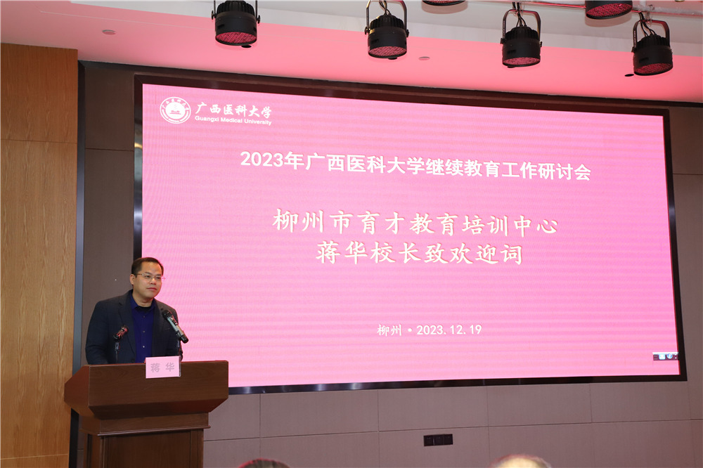 蔣華校長(zhǎng)對(duì)大家的到來(lái)表示歡迎,他向大家介紹了網(wǎng)紅城市柳州的美食、美景,分析了國(guó)際國(guó)內(nèi)形勢(shì),對(duì)黨的二十大報(bào)告中“辦好人民滿意的教育”進(jìn)行了解讀,介紹了教學(xué)點(diǎn)的基本情況,最后預(yù)祝本次工作研討會(huì)取得圓滿成功,祝愿廣西醫(yī)科大學(xué)的明天更加燦爛美好。