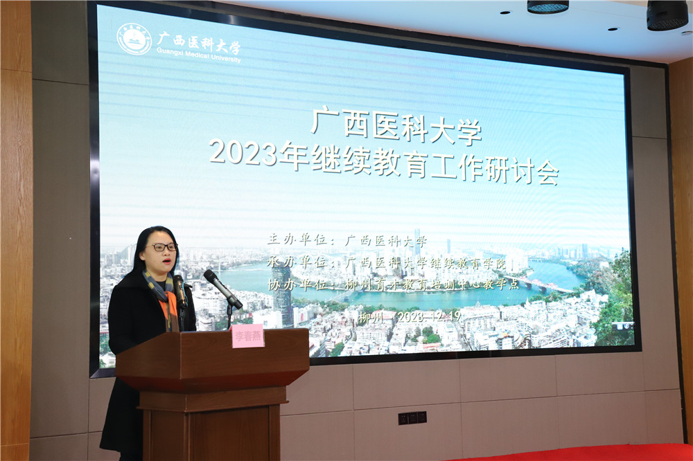▲廣西醫(yī)科大學(xué)繼續(xù)教育學(xué)院副院長(zhǎng)李春燕主持會(huì)議