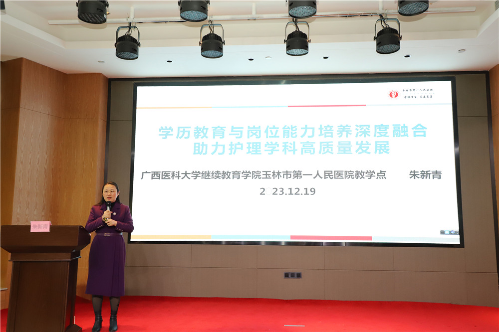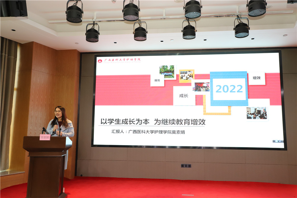 ▲廣西醫(yī)科大學(xué)繼續(xù)教育學(xué)院院長(zhǎng)周波作報(bào)告
