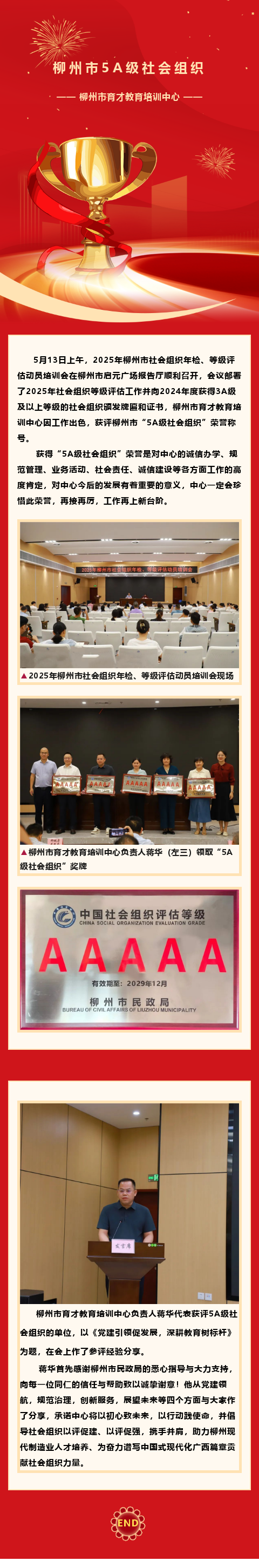 培訓(xùn)中心獲評(píng)柳州市“5A級(jí)社會(huì)組織”榮譽(yù)稱(chēng)號(hào)