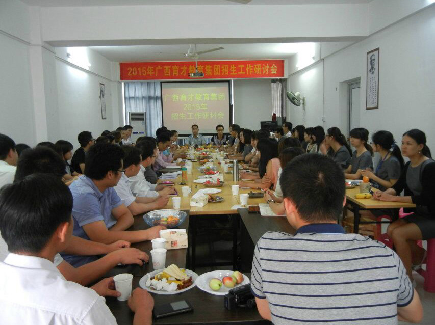 2015年4月21日,廣西育才集團(tuán)2015年招生工作研討會(huì)在柳州市東環(huán)路69號(hào)水晶印象育才教育會(huì)議室隆重召開,我中心王志校長(zhǎng)、蔣亮副校長(zhǎng)出席了會(huì)議并講話,各教學(xué)點(diǎn)主要負(fù)責(zé)同志、招生工作人員參加了會(huì)議。