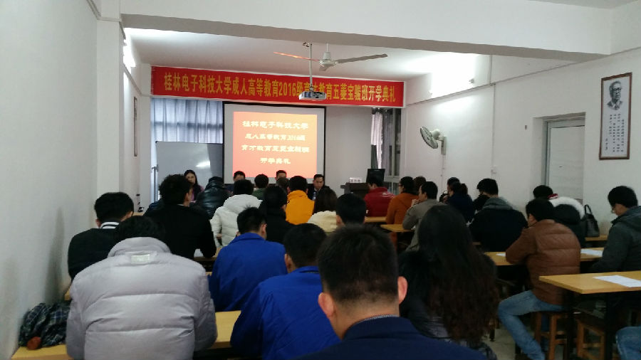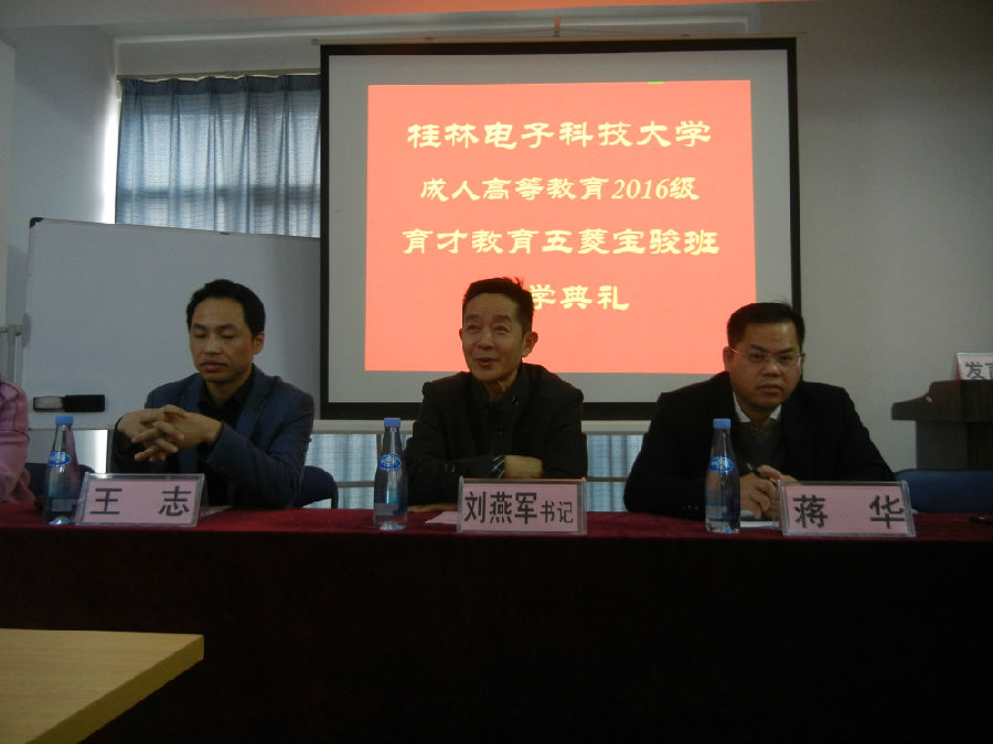 2015年12月25日,桂林電子科技大學(xué)成人高等教育2016級育才教育五菱寶駿班新生開學(xué)典禮在柳州市東環(huán)路69號育才總部水晶印象大廈513多媒體教室隆重舉行,桂林電子科技大學(xué)成教院劉燕軍書記出席了典禮并作了重要講話。