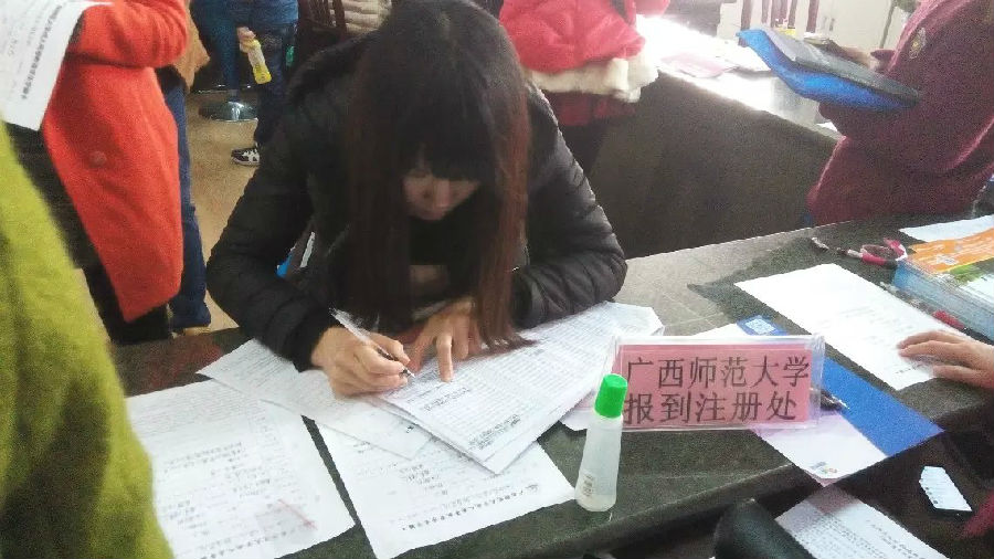 新同學(xué)在認(rèn)真填寫入學(xué)資料