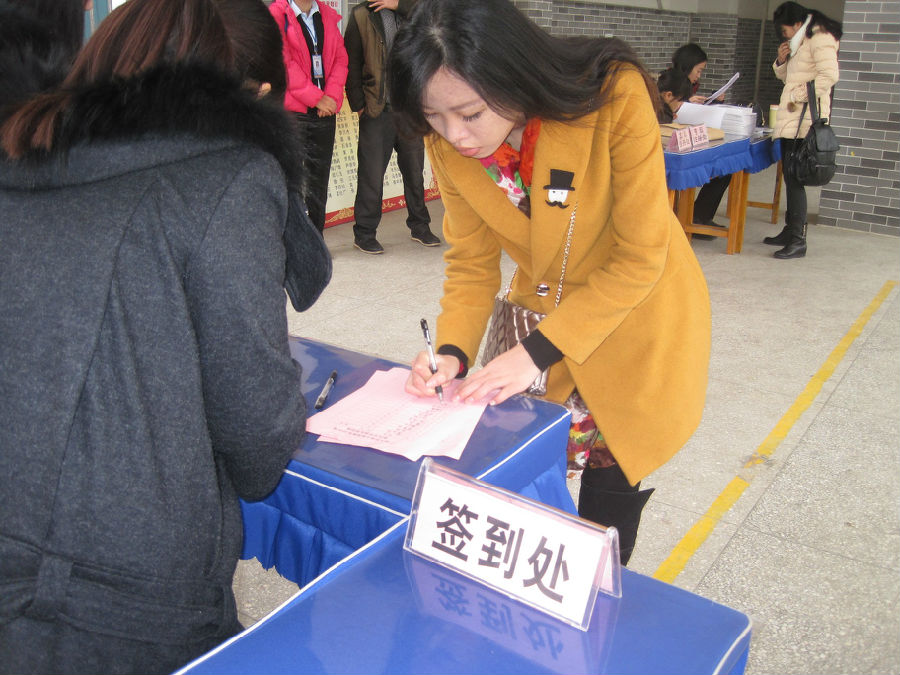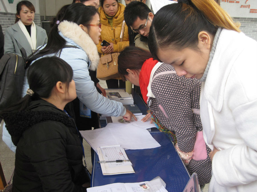 開學(xué)典禮后,同學(xué)進行報到注冊