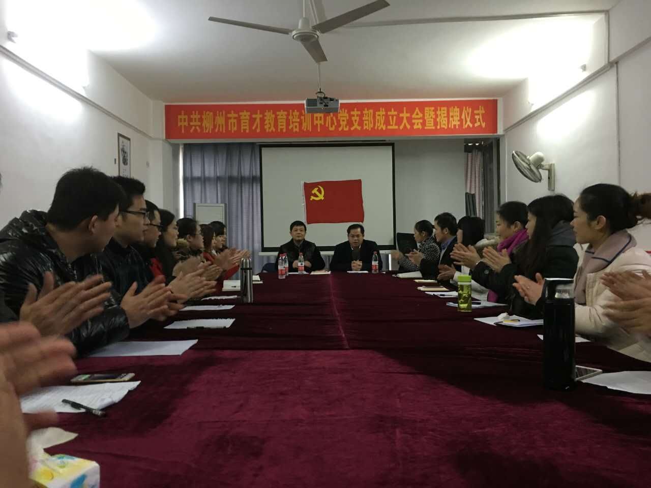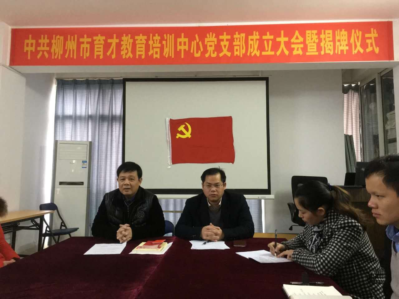 2016年1月28日上午,中共柳州市育才教育培訓(xùn)中心黨支部成立大會暨揭牌儀式在育才柳州總部隆重舉行,中共柳州魚峰區(qū)組織部副部長、“兩新”工委書記伍良同志一行4人出席了大會,育才教育黨員代表及入黨積極分子共20多人參加了會議,會議由廣西育才教育集團(tuán)董事長兼中共柳州市育才教育培訓(xùn)中心黨支部書記蔣華同志主持。會后,舉行了揭牌儀式。