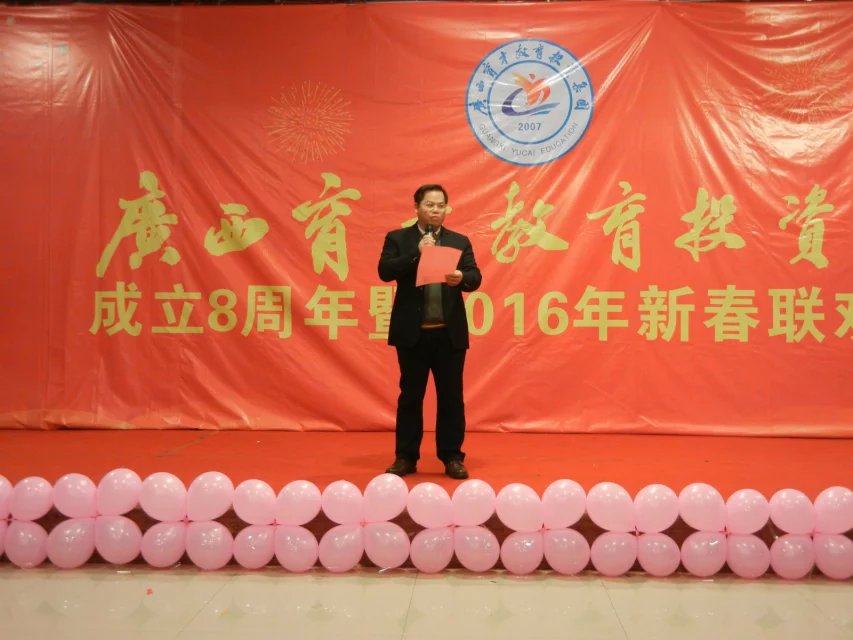 “羊舞豐收歲,金猴方啟歲”。2016年1月28日,廣西育才教育投資集團成立8周年暨2016年新春聯(lián)歡晚會在柳州市金花茶莊隆重舉行。廣西育才教育相關(guān)領(lǐng)導及教職員工近100人齊聚一堂,共同開啟2016年工作新篇章!