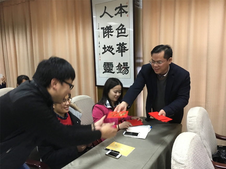 黨支部書記、董事長蔣華老師給教職工派發(fā)紅包