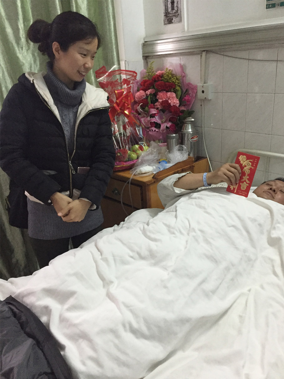 近日,廣西育才教育集團(tuán)工會(huì)來(lái)到廣西科技大學(xué)第二附屬醫(yī)院看望了生病住院的職工蔣水榮同志,把鮮花和慰問(wèn)金送到職工手中,同時(shí)也送去關(guān)懷和溫暖,鼓勵(lì)蔣水榮同志樹(shù)立信心,勇敢戰(zhàn)勝病魔,爭(zhēng)取早日康復(fù)。廣西育才教育工會(huì)成立以來(lái),堅(jiān)持以人為本,為職工排憂解難,解除職工的后顧之憂,使每位職工都能真切體會(huì)到公司的關(guān)愛(ài)。