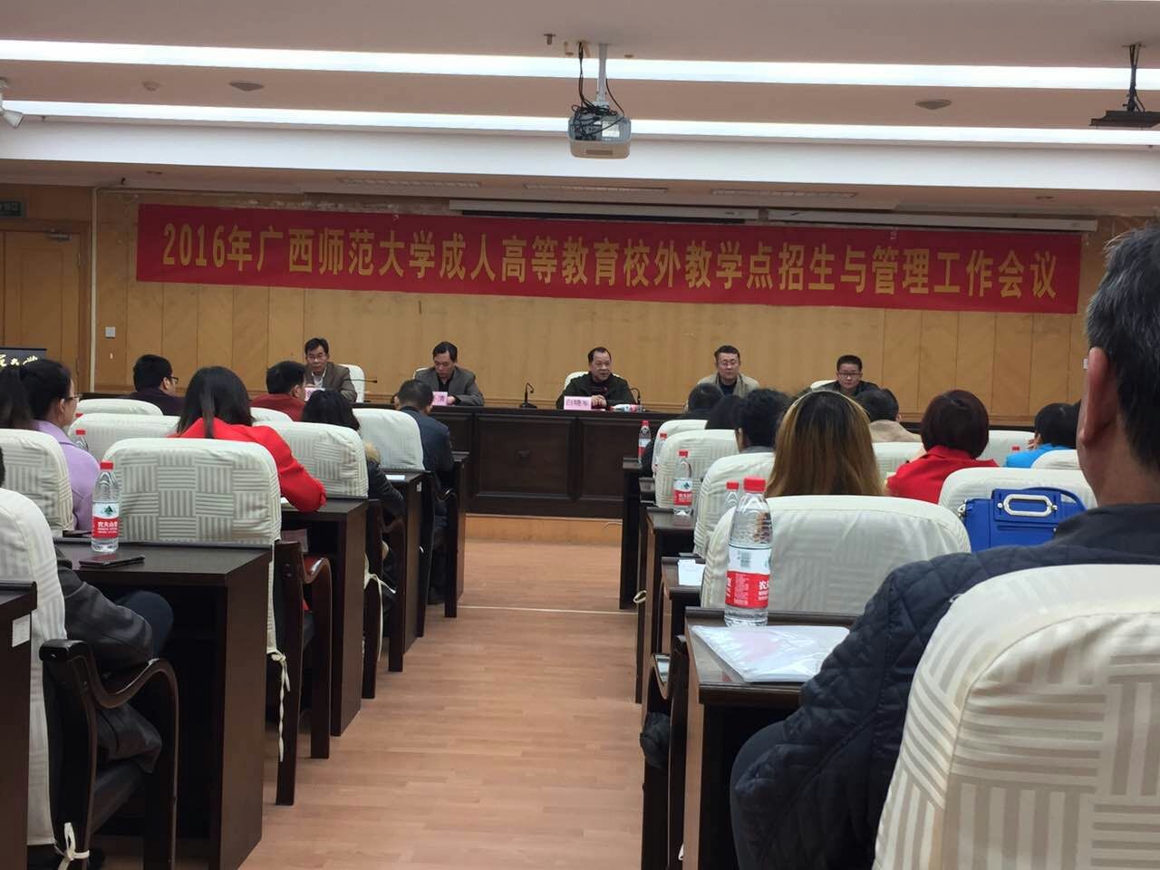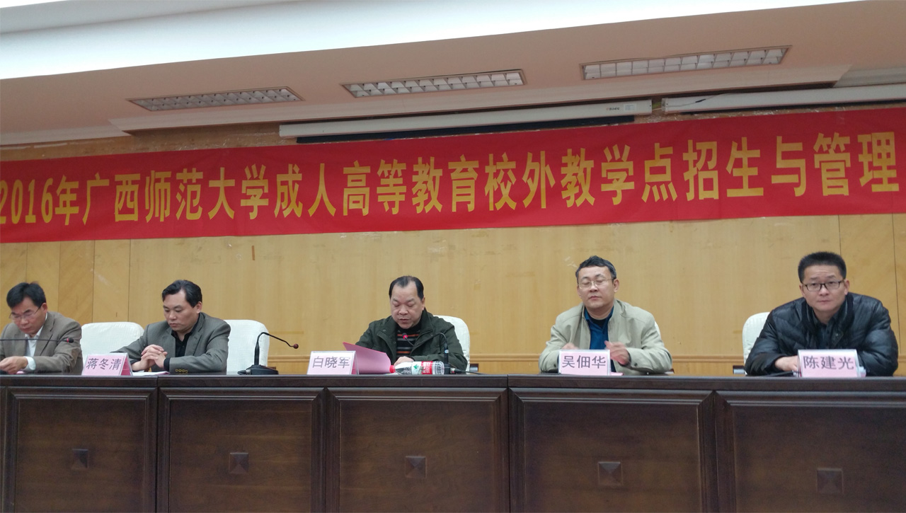 3月30日上午,2016年廣西師范大學(xué)成人高等教育校外教學(xué)點(diǎn)招生與管理工作會(huì)議在廣西師范大學(xué)育才校區(qū)隆重召開。廣西師范大學(xué)白曉軍副校長(zhǎng)出席會(huì)議并做重要講話,會(huì)議由廣西師范大學(xué)成教院吳佃華院長(zhǎng)主持。