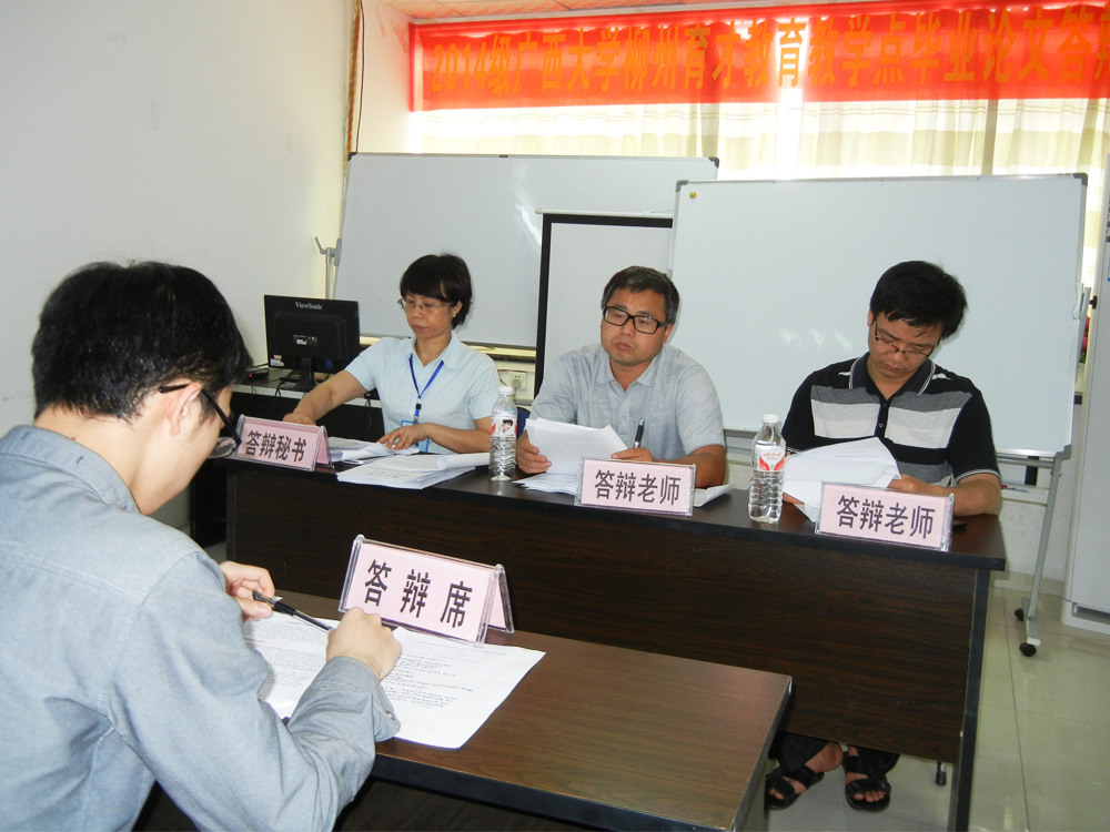 為檢驗畢業(yè)生學術(shù)研究能力與專業(yè)學習效果,經(jīng)過緊鑼密鼓的籌備工作,4月16日、17日,廣西大學育才教育教學點在育才總部水晶印象大廈舉行了2014級本科畢業(yè)論文答辯。本次有320人參加論文答辯,分成6個小組,每個答辯小組由2名答辯老師和1名答辯秘書組成。