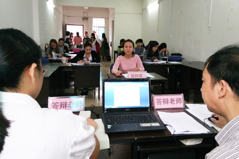 據(jù)了解,參加此次論文答辯的學生共有223人,本次答辯根據(jù)不同的專業(yè)共分為三個答辯小組,各小組均由2位答辯老師和1名答辯秘書組成,負責對參加答辯學生的成績進行評定。答辯開始后,學生們依次提交自己的畢業(yè)論文,現(xiàn)場闡述論文的主要內(nèi)容、觀點及解決方案。評委老師們在仔細聽完學生的陳述后,進行相應的點評和提問。面對老師的提問,學生們一一作答,從容不迫。最后,評委們根據(jù)學生的論文及現(xiàn)場表現(xiàn)作出綜合評分,并針對各自的論文提出具體的修改意見。