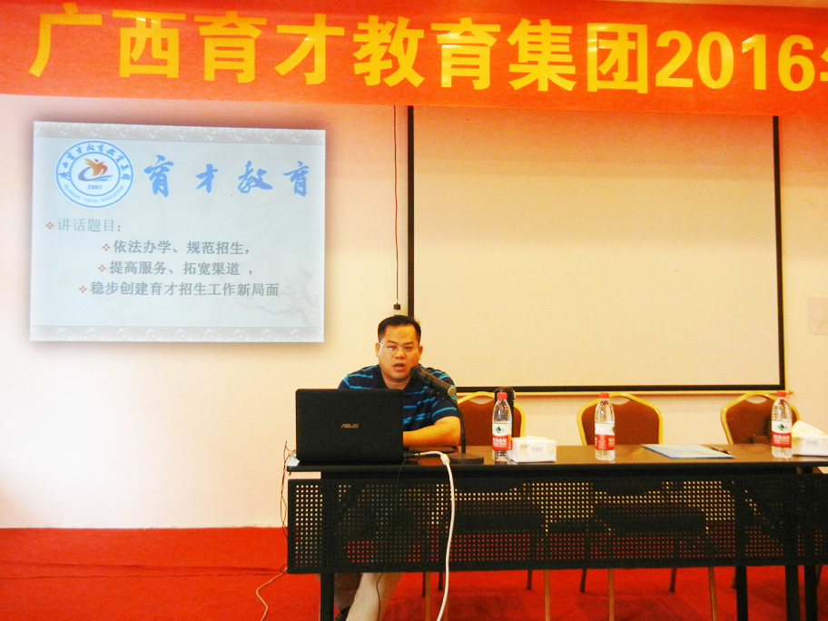 5月25–26日,廣西育才教育集團(tuán)2016年招生研討會在育才柳州總部隆重召開。廣西育才教育集團(tuán)黨支部書記、董事長蔣華老師,副董事長、醫(yī)學(xué)部部長蔣仕榮老師、王志校長、蔣亮副校長、李彩梅副校長等領(lǐng)導(dǎo)以及全體教職工參加了研討會。