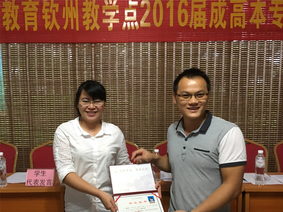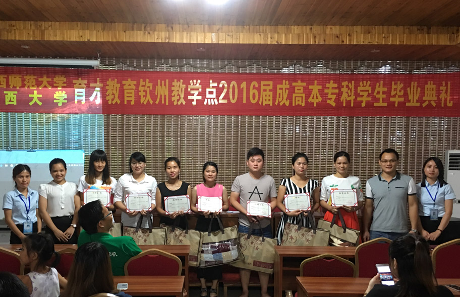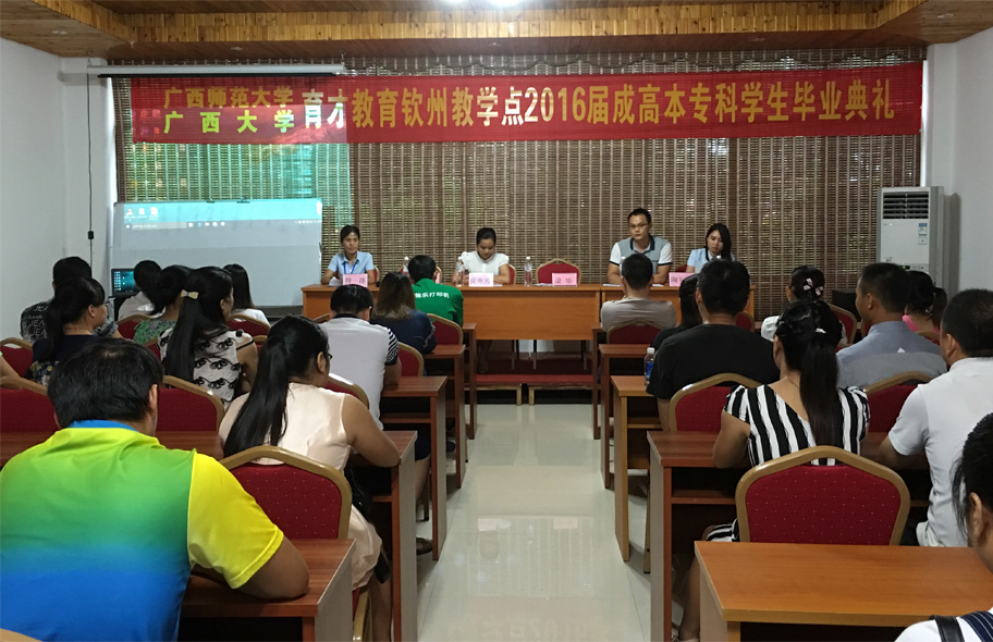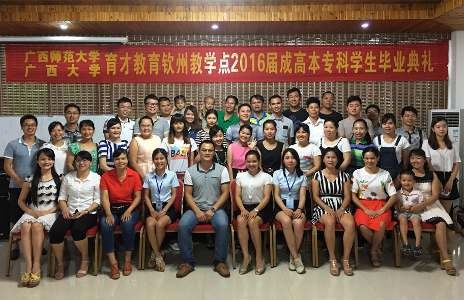 2016年7月3日上午,廣西師范大學(xué)、廣西大學(xué)育才教育北部灣教學(xué)點(diǎn)2016屆成人高等教育本??飘厴I(yè)典禮在育才北部灣分校隆重舉行。廣西育才教育集團(tuán)負(fù)責(zé)人、北部灣分校校長(zhǎng)陶長(zhǎng)華、班主任黃靜老師、黃燕芳老師、符冰老師出席典禮,來自欽州市各區(qū)、縣的100多名畢業(yè)生代表參加了畢業(yè)典禮。畢業(yè)典禮由陶長(zhǎng)華校長(zhǎng)主持。