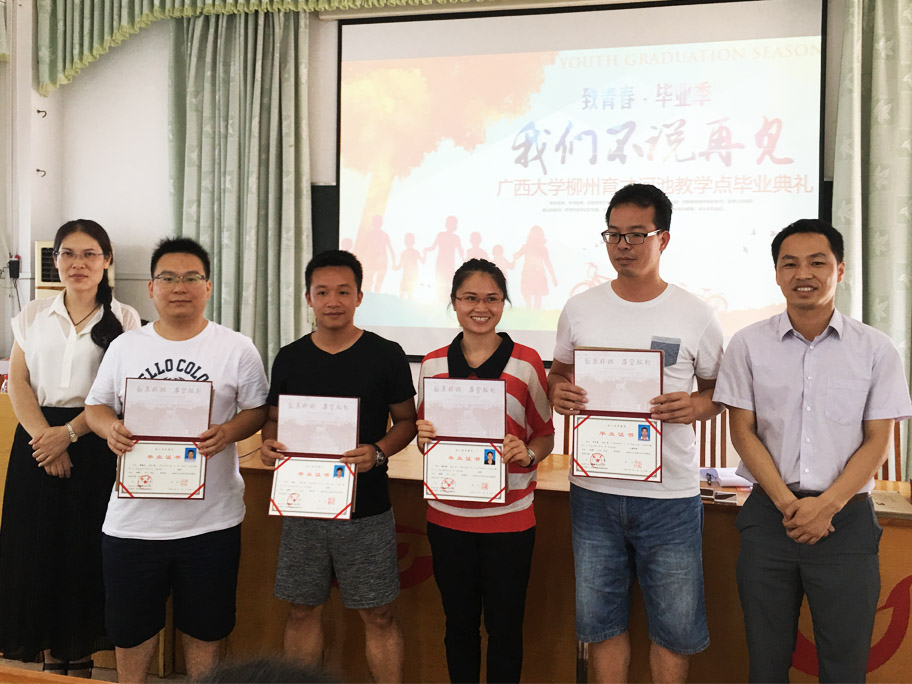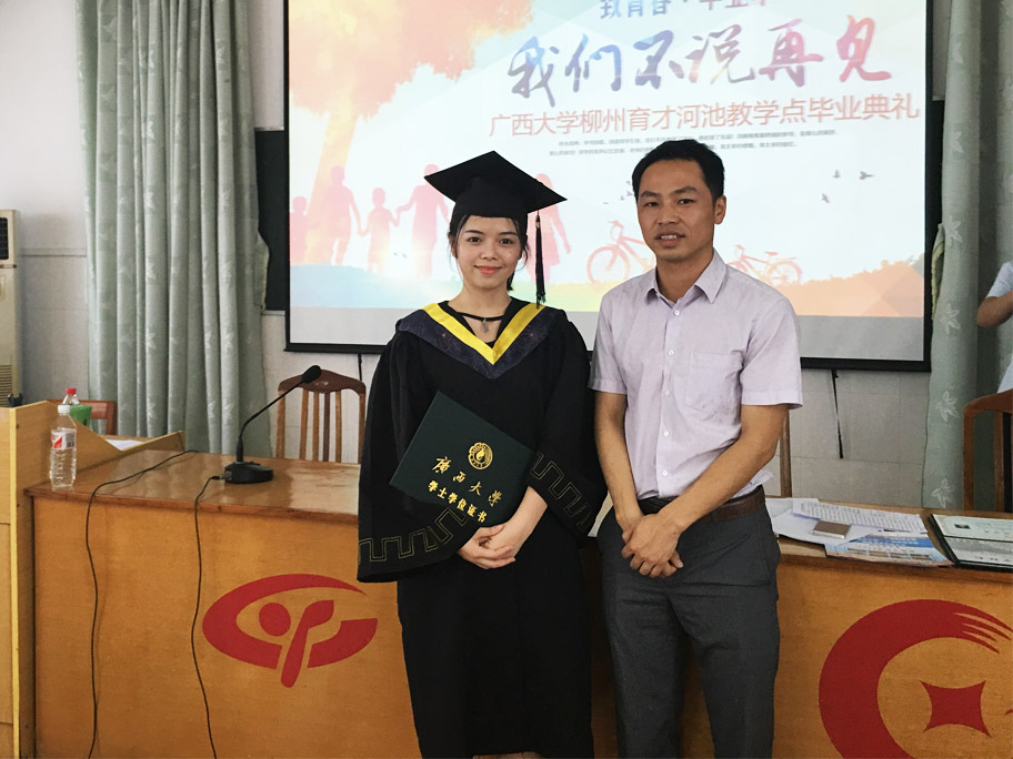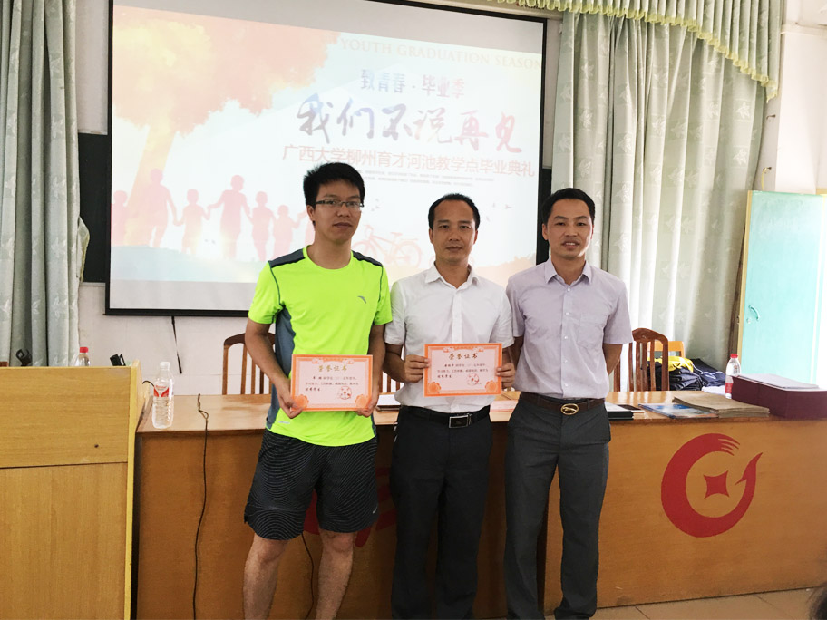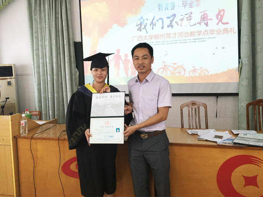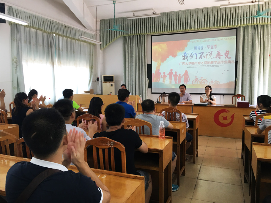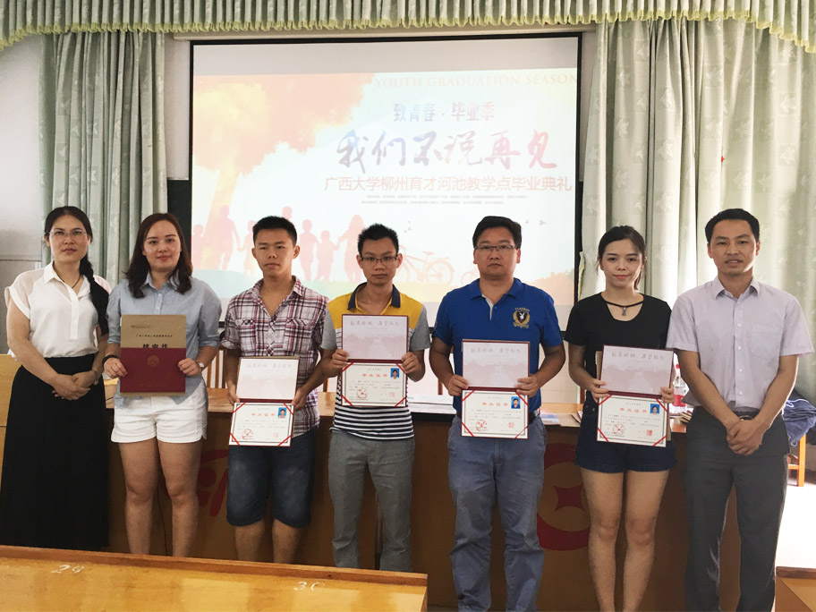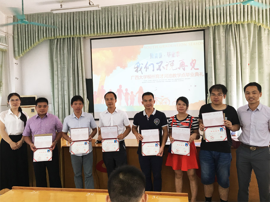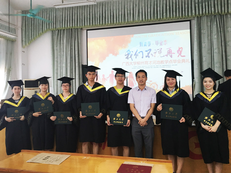 7月10日上午,廣西大學育才教育河池教學點2016屆成人高等教育本專科畢業(yè)典禮在育才河池分校隆重舉行。育才教育王志校長、李彩梅副校長、韋秋燕主任、河池分校梁森琰老師、周嘉慧老師出席典禮,來自河池市各區(qū)、縣的30多名畢業(yè)生代表參加了畢業(yè)典禮。畢業(yè)典禮由王志校長主持。