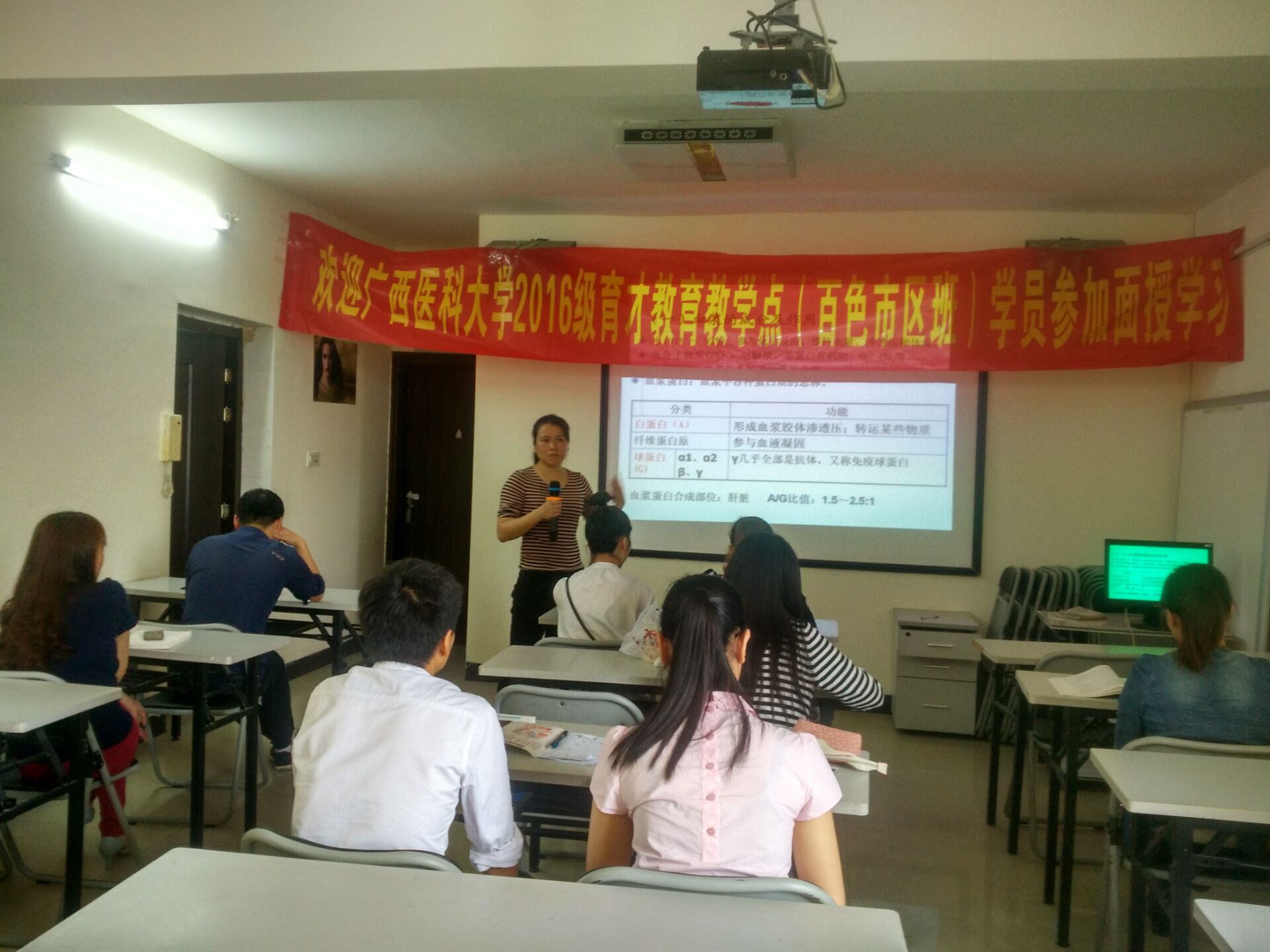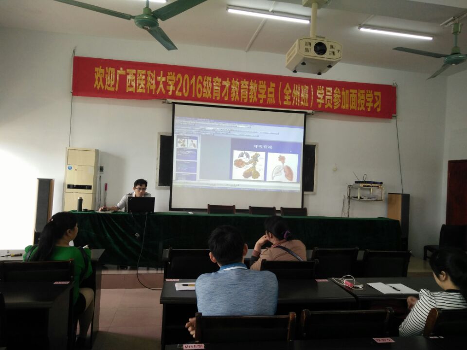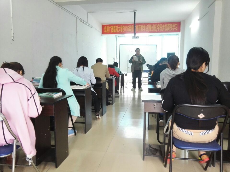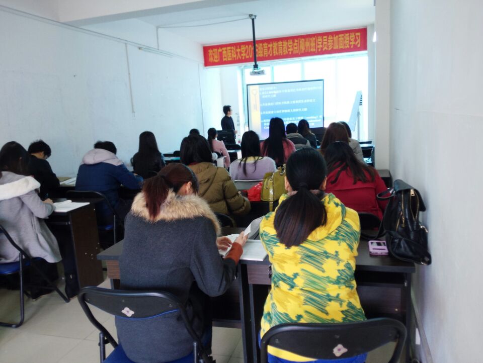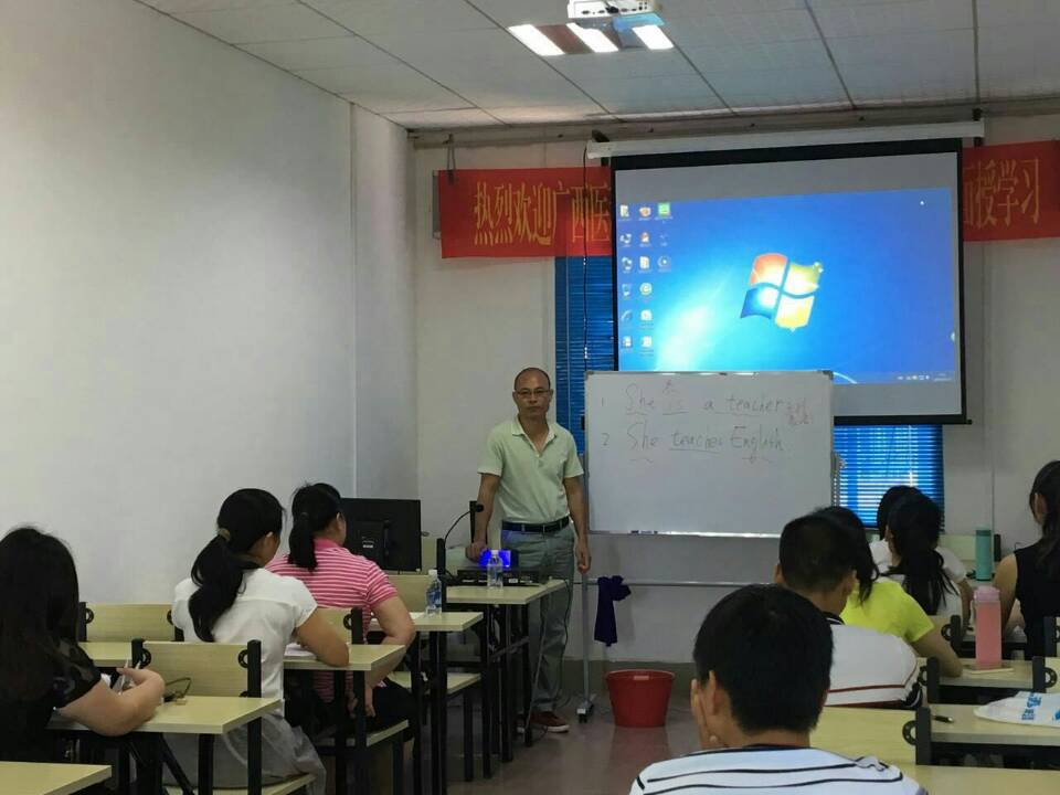 柳州市人民醫(yī)院點周照興老師在上大學(xué)英語課來賓區(qū)域?qū)W員上課