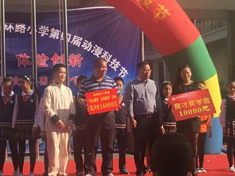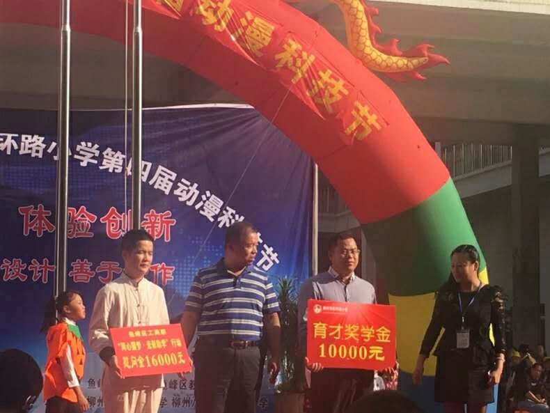 10月15日,柳州市東環(huán)路小學(xué)第四屆動(dòng)漫科技節(jié)在東環(huán)路小學(xué)隆重開(kāi)幕。育才教育黨支部書記、董事長(zhǎng)蔣華老師在開(kāi)幕式現(xiàn)場(chǎng)捐贈(zèng)了10000元育才獎(jiǎng)學(xué)金。