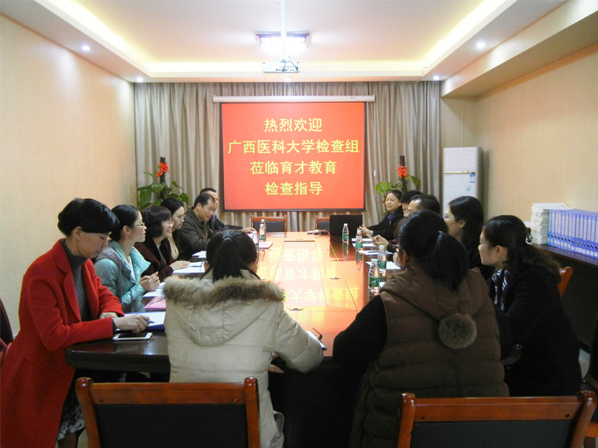 11月12日,廣西醫(yī)科大學(xué)繼續(xù)教育學(xué)院莫銳英副院長、李春燕副院長帶隊(duì)一行6人蒞臨育才柳州總部進(jìn)行教學(xué)評估檢查,廣西育才教育集團(tuán)黨支部書記、董事長蔣華老師、醫(yī)學(xué)部部長蔣仕榮、校長王志、副校長李彩梅參加了匯報會。會議由莫銳英副院長主持。
