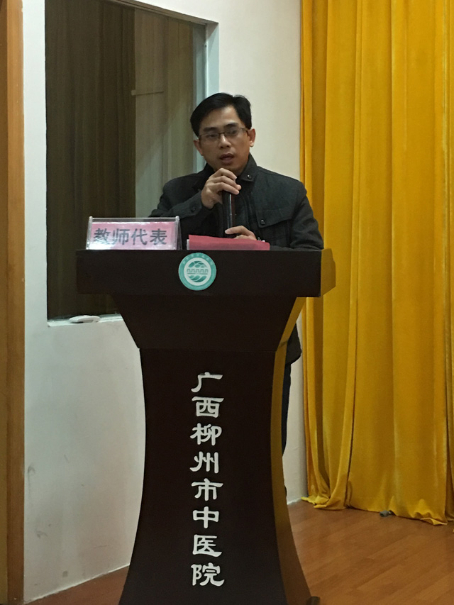 教師代表張安文在發(fā)言中表示將本著“誠(chéng)信、嚴(yán)謹(jǐn)、敬業(yè)”為準(zhǔn)則,不斷提高業(yè)務(wù)素質(zhì),認(rèn)真教學(xué),勤奮工作,幫助新同學(xué)們?cè)缛粘砷L(zhǎng)成才;2017級(jí)針灸推拿學(xué)本科專業(yè)的譚凱元同學(xué)作為新生代表發(fā)言,他倡議新生在以后的學(xué)習(xí)生活中積極進(jìn)取,努力使自己成為一個(gè)合格的中醫(yī)藥學(xué)子,為學(xué)校、為社會(huì)作出自己應(yīng)有的貢獻(xiàn)。
