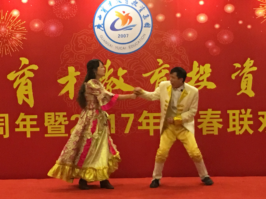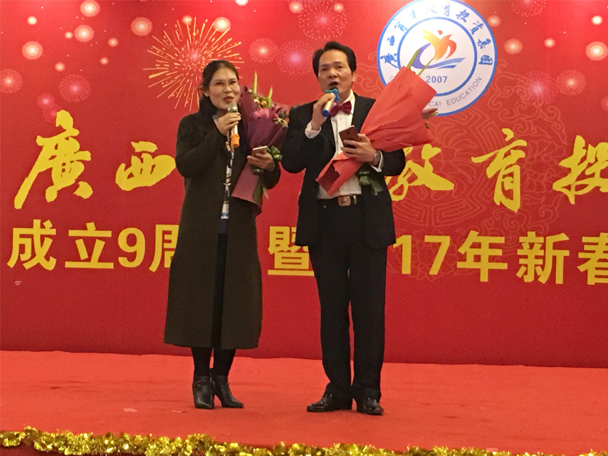 金雞喜鳴報(bào)春曉,育才欣迎豐收年。1月21日晚,廣西育才教育集團(tuán)成立9周年暨2017年新春聯(lián)歡晚會在柳州金惠大酒樓舉行。育才領(lǐng)導(dǎo)與全體員工歡聚一堂,共迎新春佳節(jié)。同時(shí)蒞臨本次晚會的還有兩位特邀嘉賓:廣西醫(yī)科大學(xué)繼續(xù)教育學(xué)院院長、國家高級禮儀專家-趙邦教授;柳州市魚峰區(qū)組織部副部長、“兩新”工委-伍良書記。